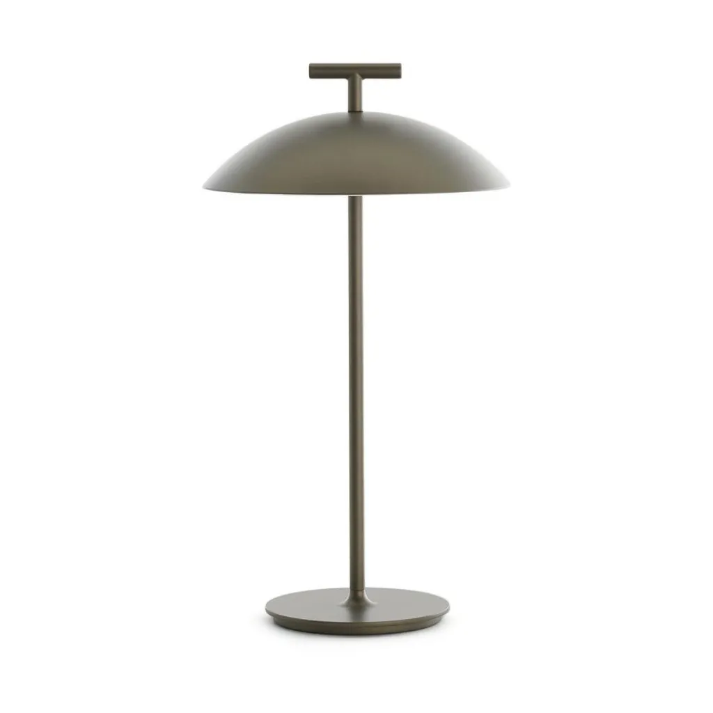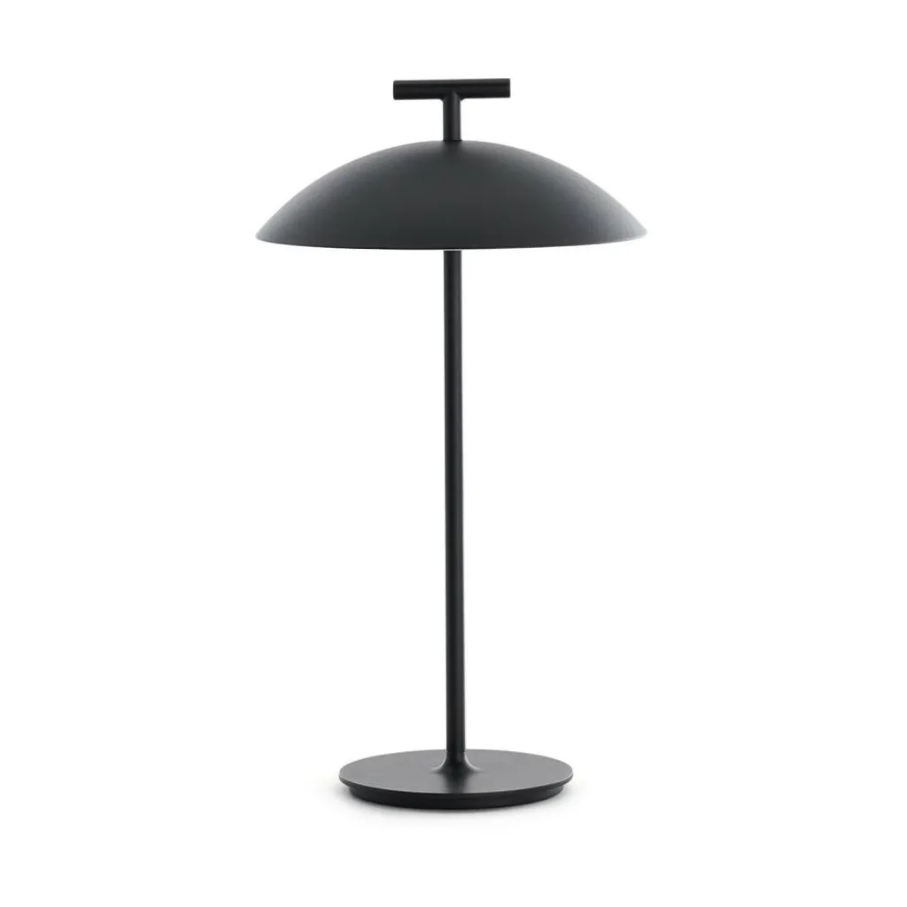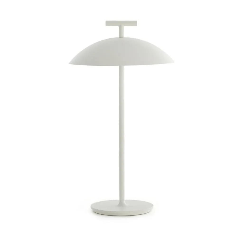 Die Mini Geen-A LED Outdoor Tischleuchte mit Akku wurde von Ferruccio Laviani für die Marke Kartell entworfen. Mit ihrem schlanken Gestell und dem kuppelförmigen Schirm ist die Mini Geen-A LED Outdoor Tischleuchte mit Akku ein kleiner, praktischer Begleiter im Freien.
