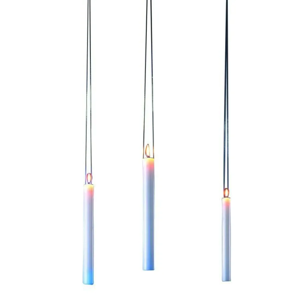 Ingo Maurers Fly Candle Fly! ist eine Wachskerze mit einem eingegossenem, dünnem Aufhängeseil von 3 Metern. Fly candle fly! scheint wie von Zauberhand im Raum zu hängen.
