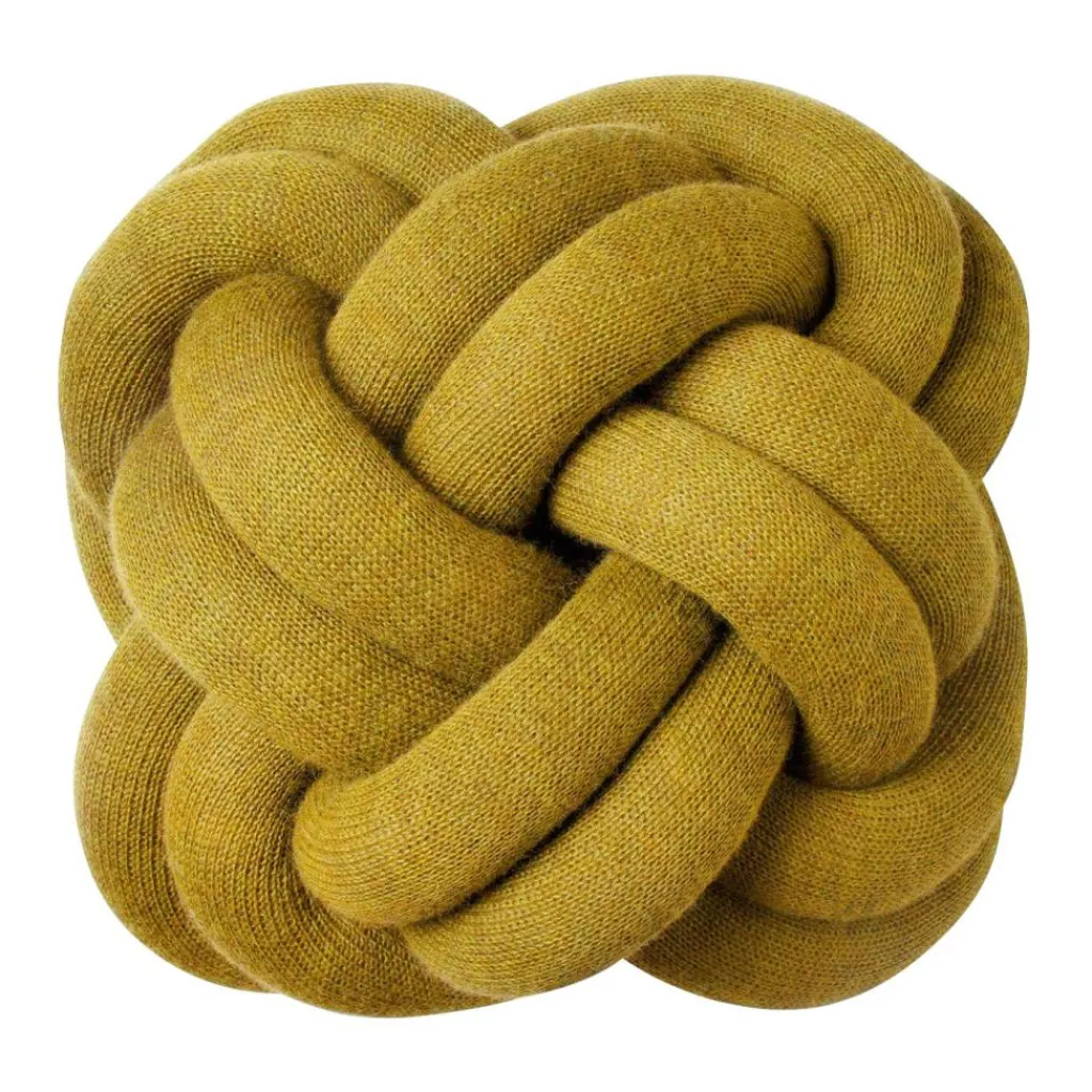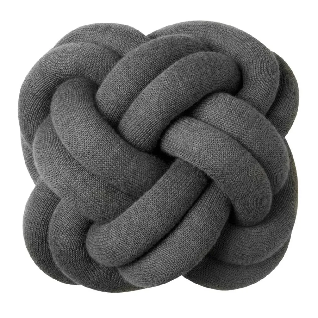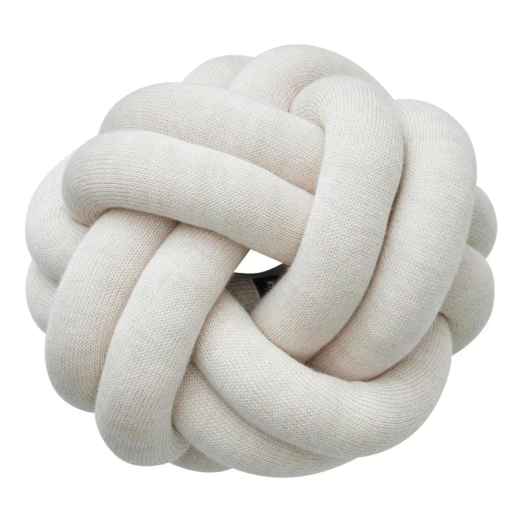Das Knot Kissen wurde von Ragnheiður Ösp Sigurðardóttir für die Marke Design House Stockholm entworfen. Es besticht mit seiner einzigartigen Form, die eher einem dekorativen Knoten als einem Kissen gleicht. Das Design spiegelt die Experimentierfreude wieder, die die skandinavische Designerin an einer Maschine zum Schlauchstricken zeigt.