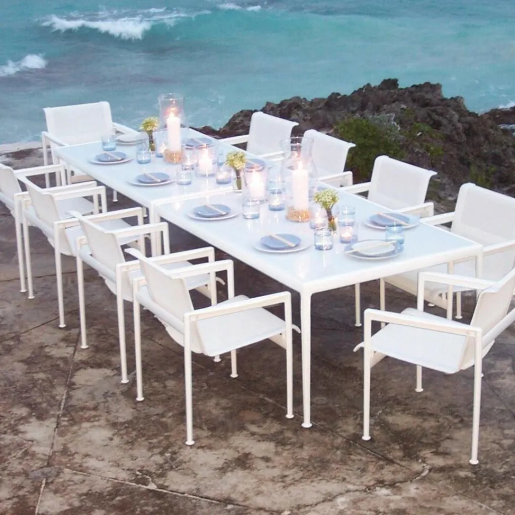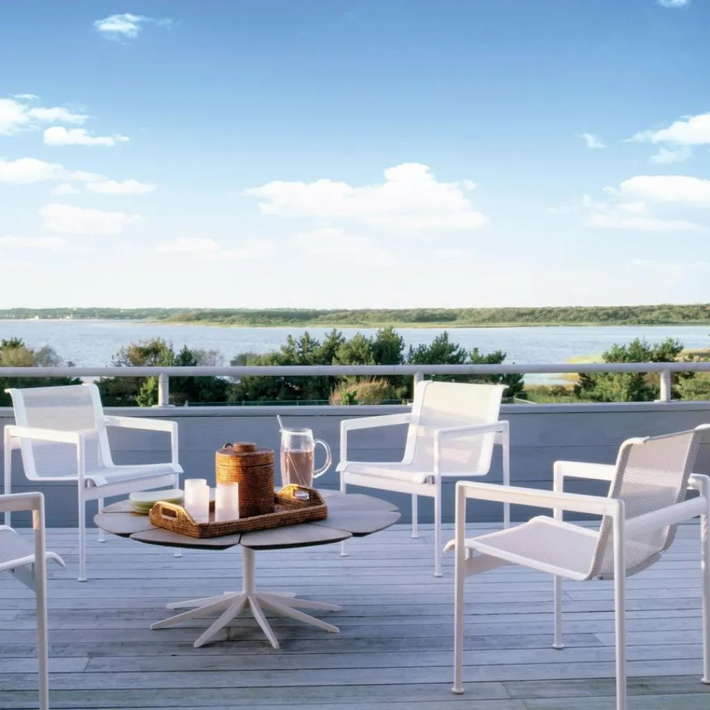 Der 1966 Richard Schultz Gartenarmlehnstuhl begeistert aufgrund seiner puristischen Optik und klaren Linienführung. Auf zusätzliche Designs wird bewusst verzichtet. Egal, ob auf Ihrer Terrasse, Ihrem Balkon oder in Ihrem Garten, dieser Armlehnstuhl macht immer eine ausgezeichnete Figur. Passend zu diesem Stuhl bietet Ihnen die „1966 Collection“ Tische sowie Beistelltische.