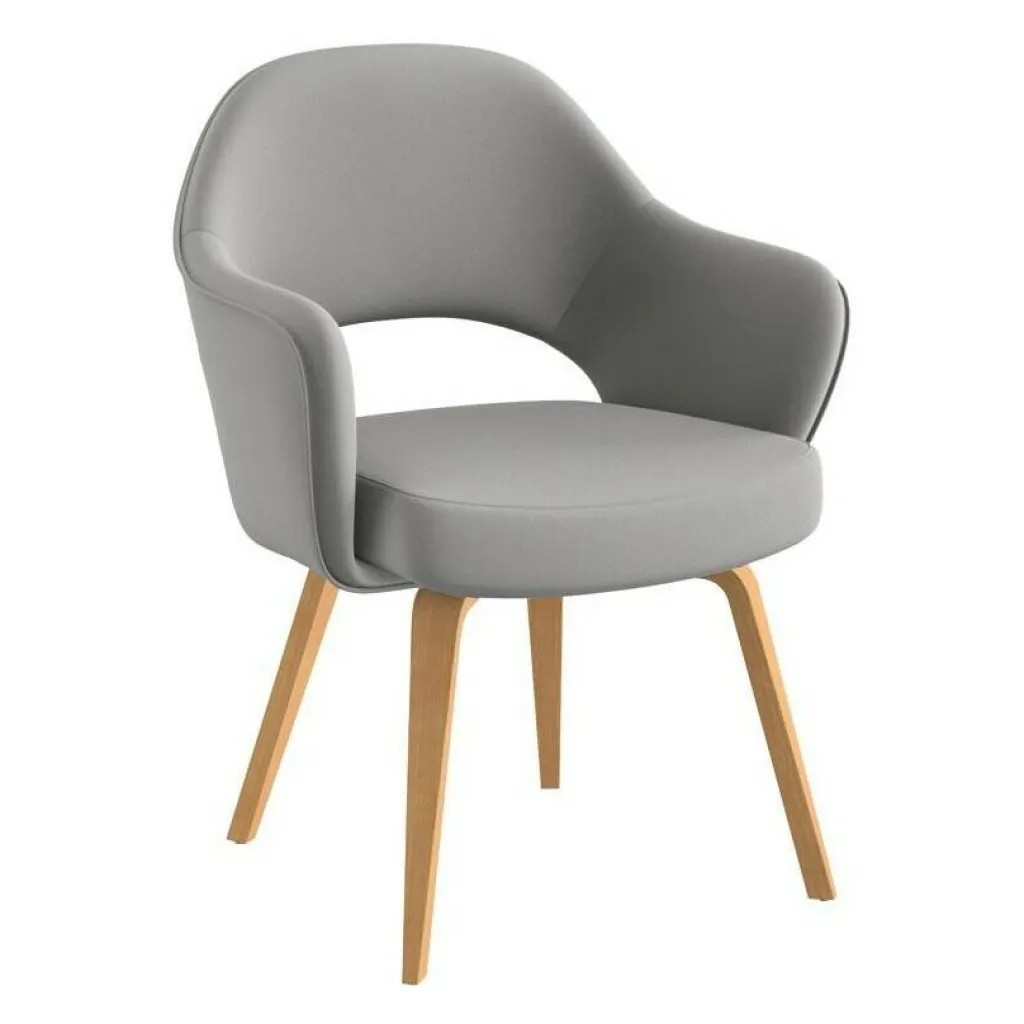 Der Saarinen Conference Armlehnstuhl Gestell Eiche mit einer Sitzfläche von 65,5 x 63 cm, einer Höhe von 81,5 cm und einer Sitzhöhe von 46 cm kann vielseitig verwendet werden. Im privaten Bereich fügt er sich in modern und klassisch gestaltete Wohnlandschaften harmonisch ein und macht in unterschiedlichen Wohnbereichen wie Esszimmern, Wohnzimmern oder Arbeitszimmern immer eine ausgezeichnete Figur. Dank seiner bequemen Polsterung ist er als Stuhl für Konferenz- oder Seminarräume eine hervorragende Wahl. Auch in einem Wartezimmer leistet der strapazierfähige Armlehnstuhl hilfreiche Dienste.