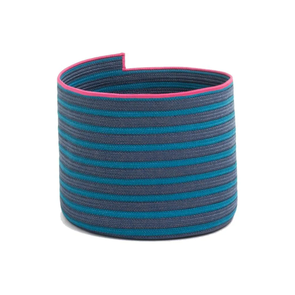 Der ehrliche Abschluss an der oberen Kante dieses zylindrischen Aufbewahrungskorbes gibt dessen Designkonzept preis. Denn die scharfe Stufe deutet auf eine spiralartige Verarbeitung hin. Auch die auffällige Farbkombination der parallelen, aber nicht waagrechten Streifen macht dies deutlich. Damit ist schon auf den ersten Blick klar: Der South Aufbewahrungskorb besteht aus einer kreisförmigen Scheibe als Grundfläche und einem flachen Textilband, das sich von deren Rand spiralförmig nach oben windet. Hergestellt aus Polyolefin, besticht das Outdoor-Accessoire durch seine Robustheit und Resilienz gegenüber Witterungseinflüssen. Zudem ist das OEKO-TEX®-zertifizierte Material frei von Schadstoffen, was es zu einem nachhaltigen Produkt macht. Der South Aufbewahrungskorb kann als Pflanzenübertopf oder als Wäschekorb verwendet werden. Damit passt er in den Wellnessbereich eines Hotels ebenso wie auf eine Terrasse.