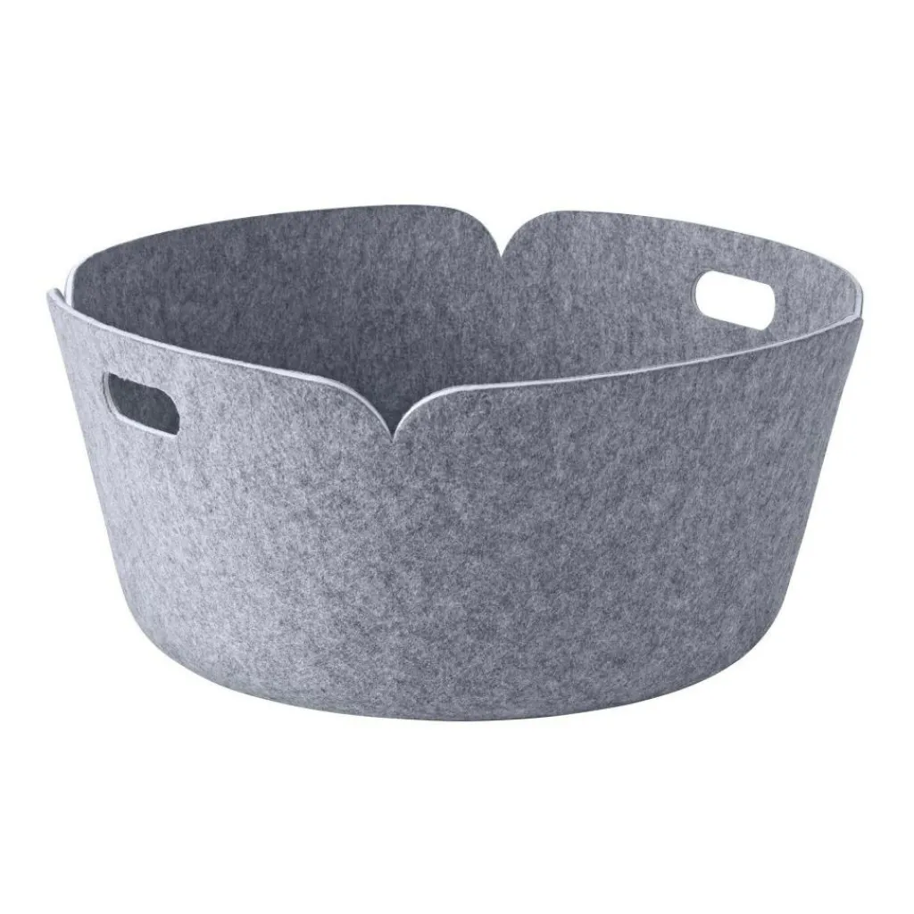 Der Restore Round Aufbewahrungskorb wurde von dem Designer Mika Tolvanen für den Hersteller Muuto entworfen. Der Designer ist Mitglied der finnischen Rehti Design Group. Für ihn war es wichtig, einen Aufbewahrungskorb zu entwerfen, der sich harmonisch und möglichst unauffällig an das Ambiente anpasst. Gekonnt kombinierte er Polymer Filz mit der Rundform des Korbes zu einem optisch freundlichen Ganzen. Der Name RESTORE wurde von der Tatsache inspiriert, dass die Aufbewahrungskörbe aus recycelten PET-Flaschen hergestellt werden.