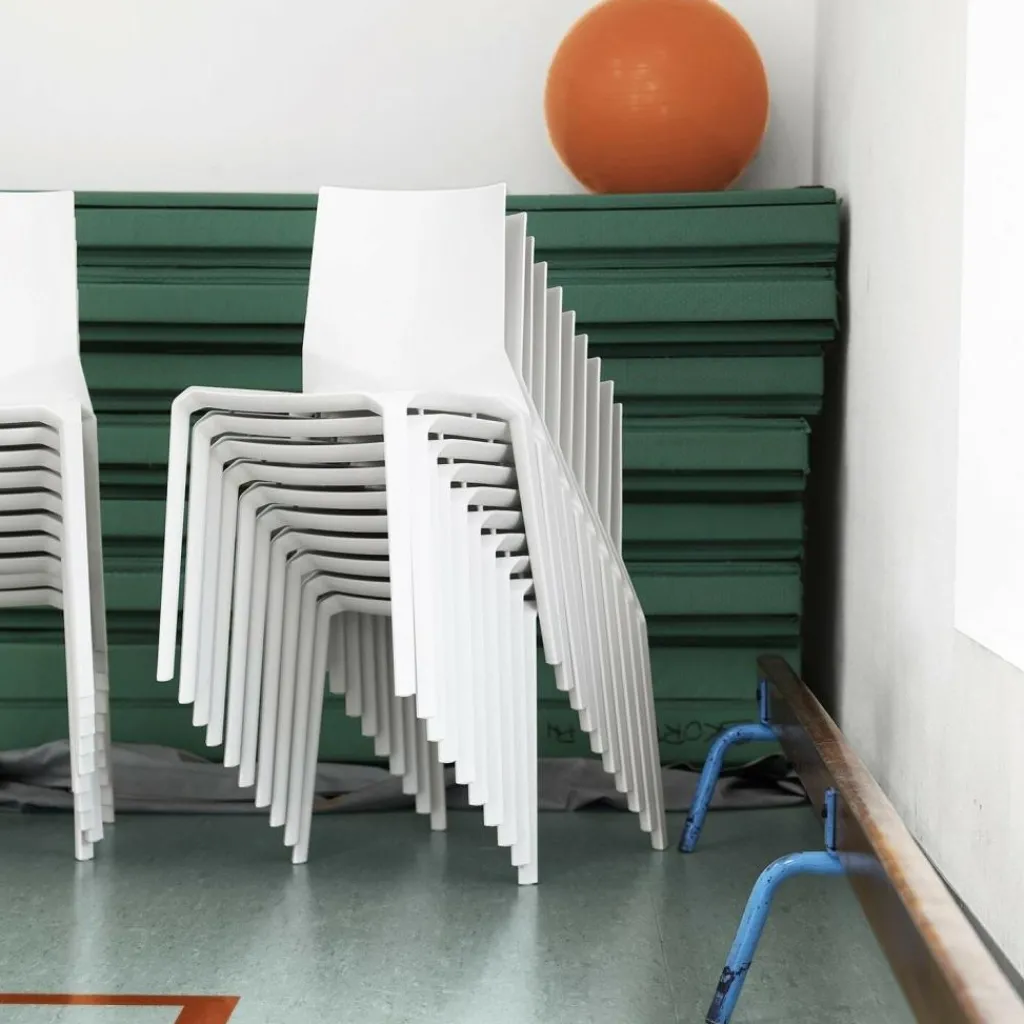 Darüber hinaus können bis zu 10 Plana Stühle gestapelt werden. Die moderne Herstellung erlaubt außerdem ein hervorragendes Preis-/Leistungsverhältnis und die Produktion der Plana Stühle in verschiedenen Farben, siehe unsere Plana „Produktvarianten“.