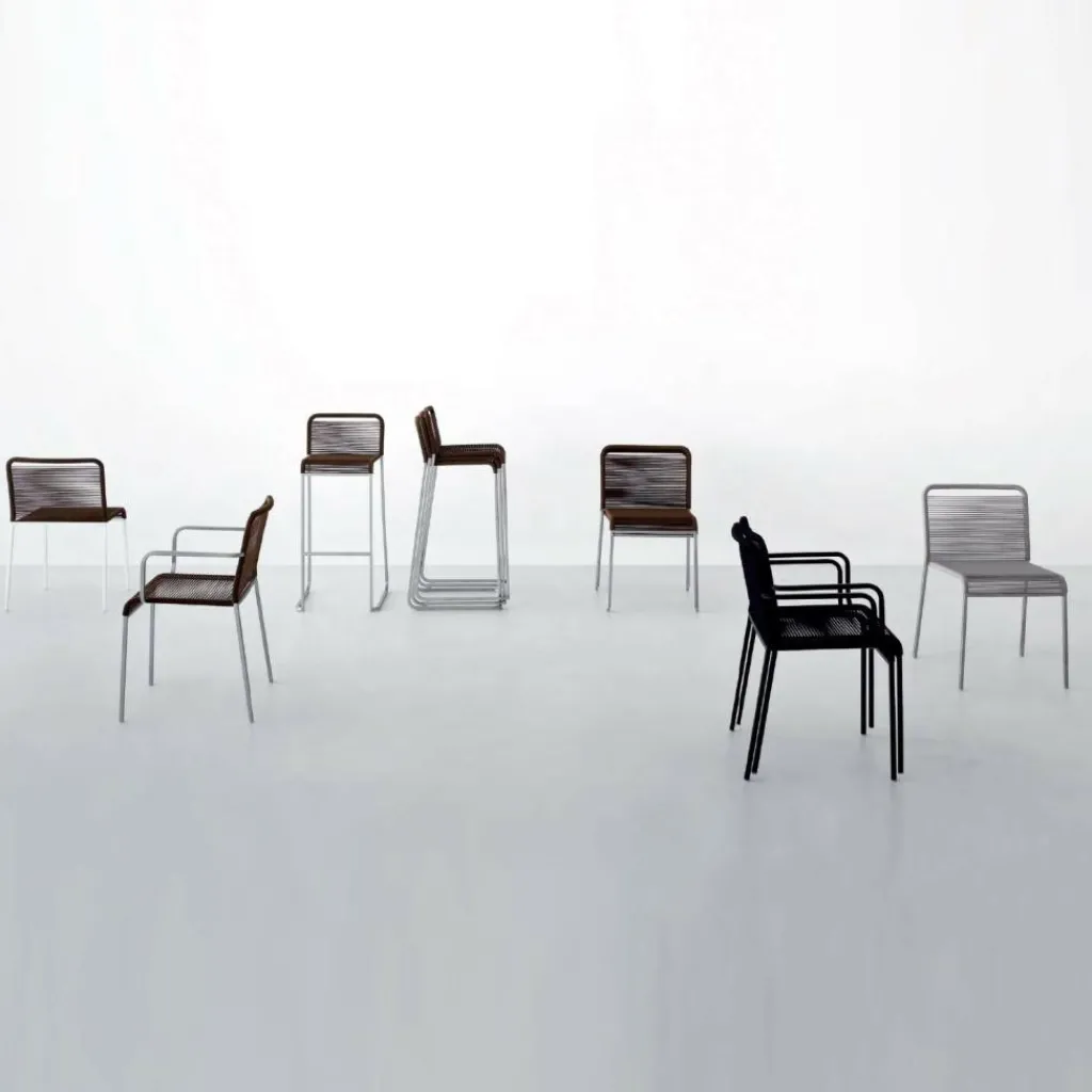 Ein wahres Design-Highlight ist der Aria Stuhl stapelbar, den der Designer Romano Marcato für den italienischen Hersteller lapalma kreiert hat. Dabei ist seine Konstruktion mit nur einem Wort zu beschreiben: Leichtigkeit. Nicht nur durch sein geringes Gewicht, sondern ebenso durch die besondere Form. Der Stuhl besteht aus einer einfachen Metallstruktur mit einem quadratischen Querschnitt. Diese wird von einer Schnur umgeben, die unendlich erscheint und Sitzfläche sowie Rückenlehne bildet.
