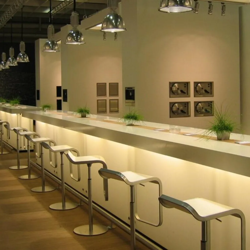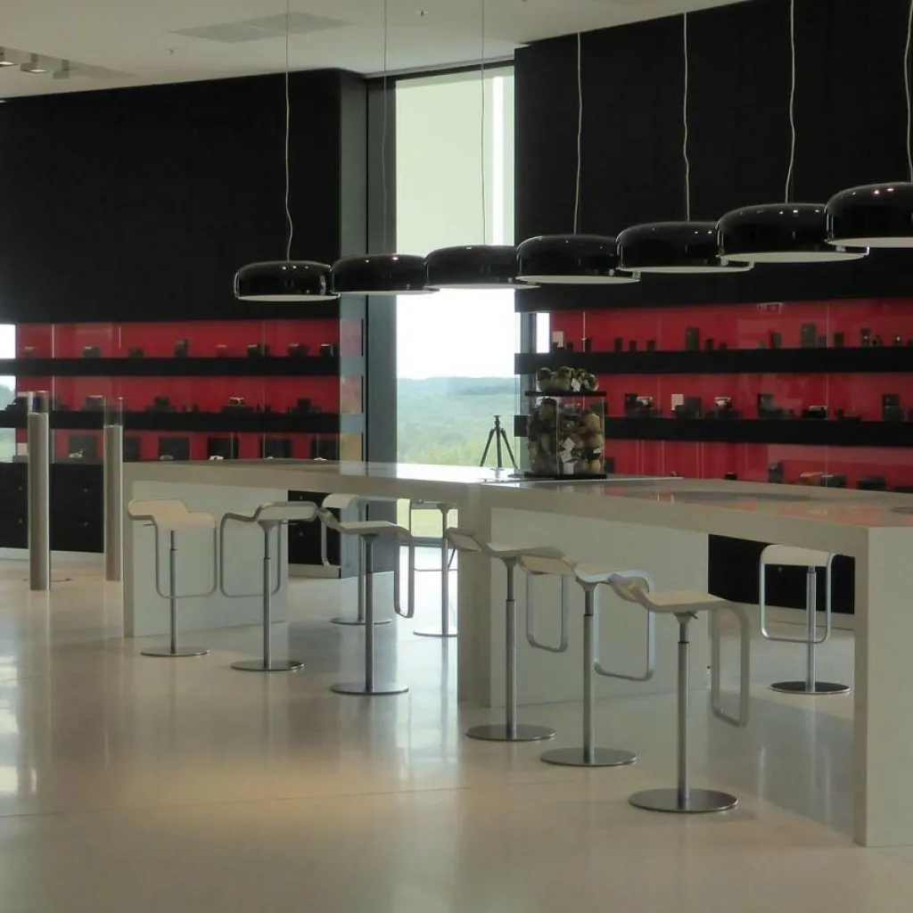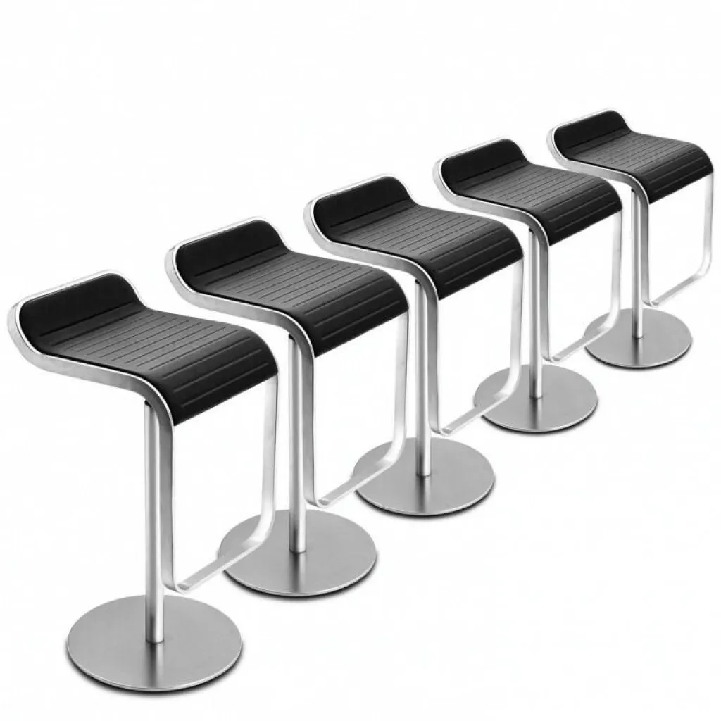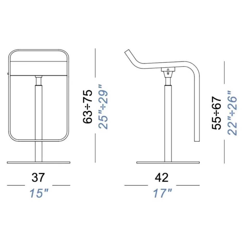 Ähnlich wie ein Raumschiff, bei dem auf unnötigen Ballast verzichtet werden muss, reduziert sich der Entwurf des LEM S79 Barhocker Sitzfläche Eiche 63-75cm auf das Wesentliche. Zum Blickfang wird ein glänzender Rahmen, der sich von der Sitzschale an der Vorderseite nach unten zieht und eine Fußstütze bildet. Das Gestell besteht aus Metall mit einer galvanisierenden matten Veredelung aus Nickel und Chrom. Die runde Metallbodenplatte ist mit Edelstahl Aisi 304 pulverbeschichtet und hat einen Durchmesser von 37 cm. Zur Schonung empfindlicher Böden sind an der Unterseite Filzgleiter montiert. Die Sitzfläche besteht aus Eichenlaminat, dass mit Acrylharz versiegelt wurde.