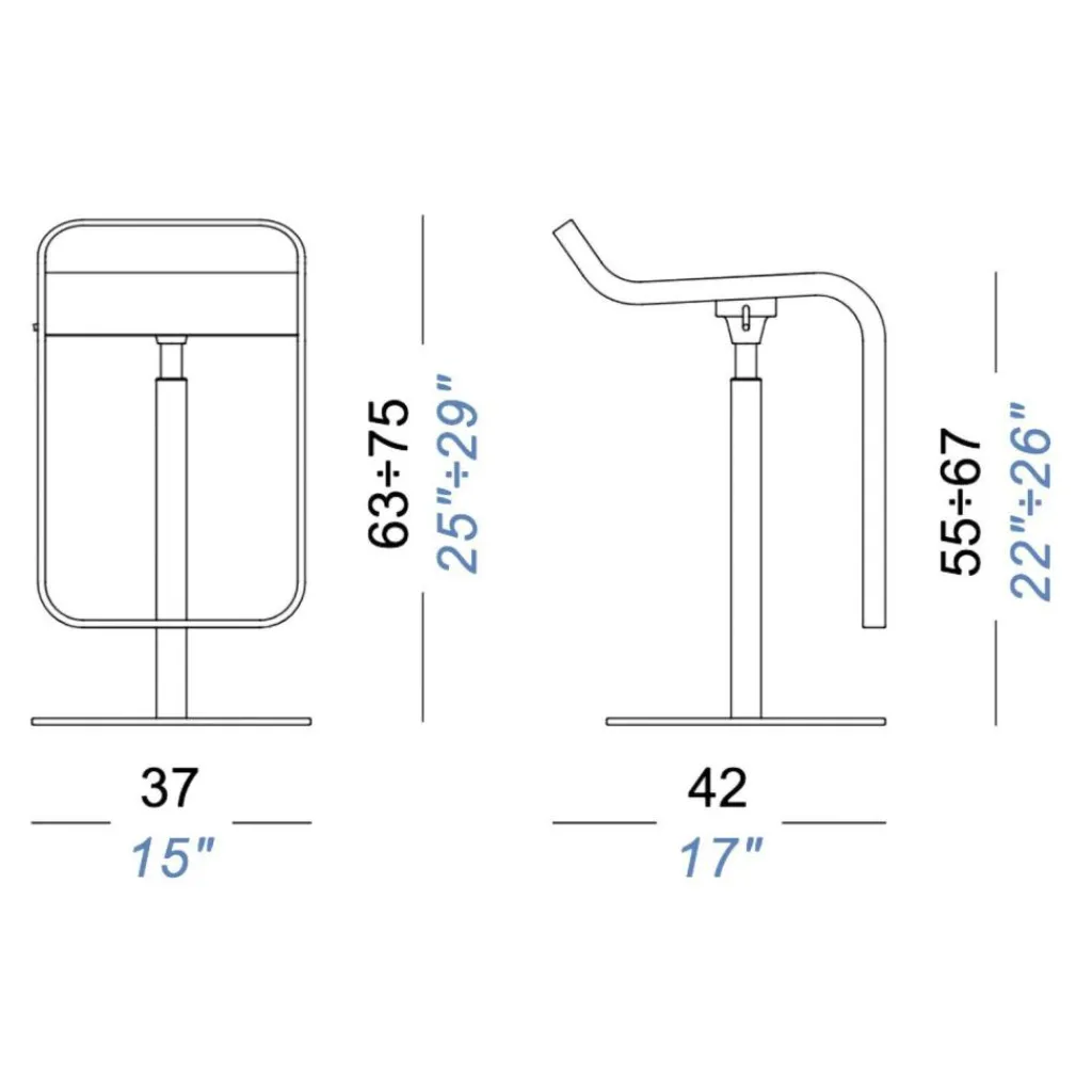 Der LEM S79 Barhocker Sitzfläche Leder 63-75cm ist 37 cm breit. Die Tiefe beträgt 42 cm. Der vielseitig einsetzbare Barhocker ist 13,7 kg schwer. Er harmoniert mit jedem Einrichtungsstil und passt in das private Umfeld ebenso gut wie in ein Restaurant oder die Hotellobby.
