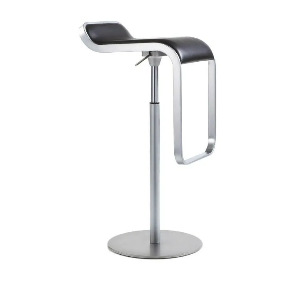 Der glänzende Rahmen, der die Sitzfläche des Barhockers umrundet und vorne eine Fußstütze bildet, wird zum Markenzeichen . Eine mit Edelstahl überzogene Bodenplatte gewährleistet sicheren Stand. Unter der runden Platte sind Filzgleiter montiert. Das Metallgestell ist mit Chrom und Nickel veredelt. Die Sitzschale besteht aus formgepresstem Multiplex. Darüber spannt sich edles Leder aus Kuhhaut, das 2,4 bis 2,5 mm dick ist. Den LEM S80 Barhocker Sitzfläche Leder 66-79cm gibt es in unterschiedlichen Farben.