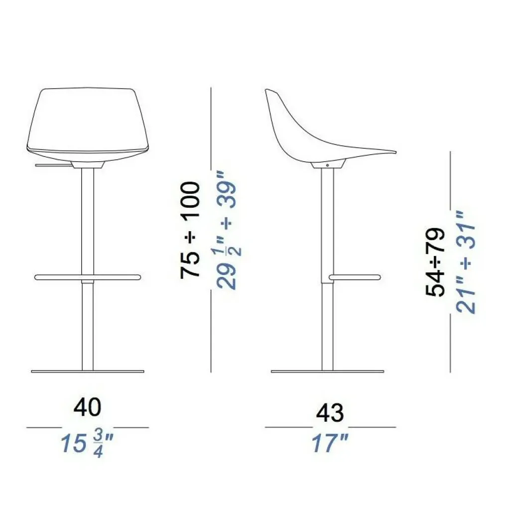 Lapalma Miunn S104 Barhocker Sitzfläche Leder 75-100cm| Barhocker
