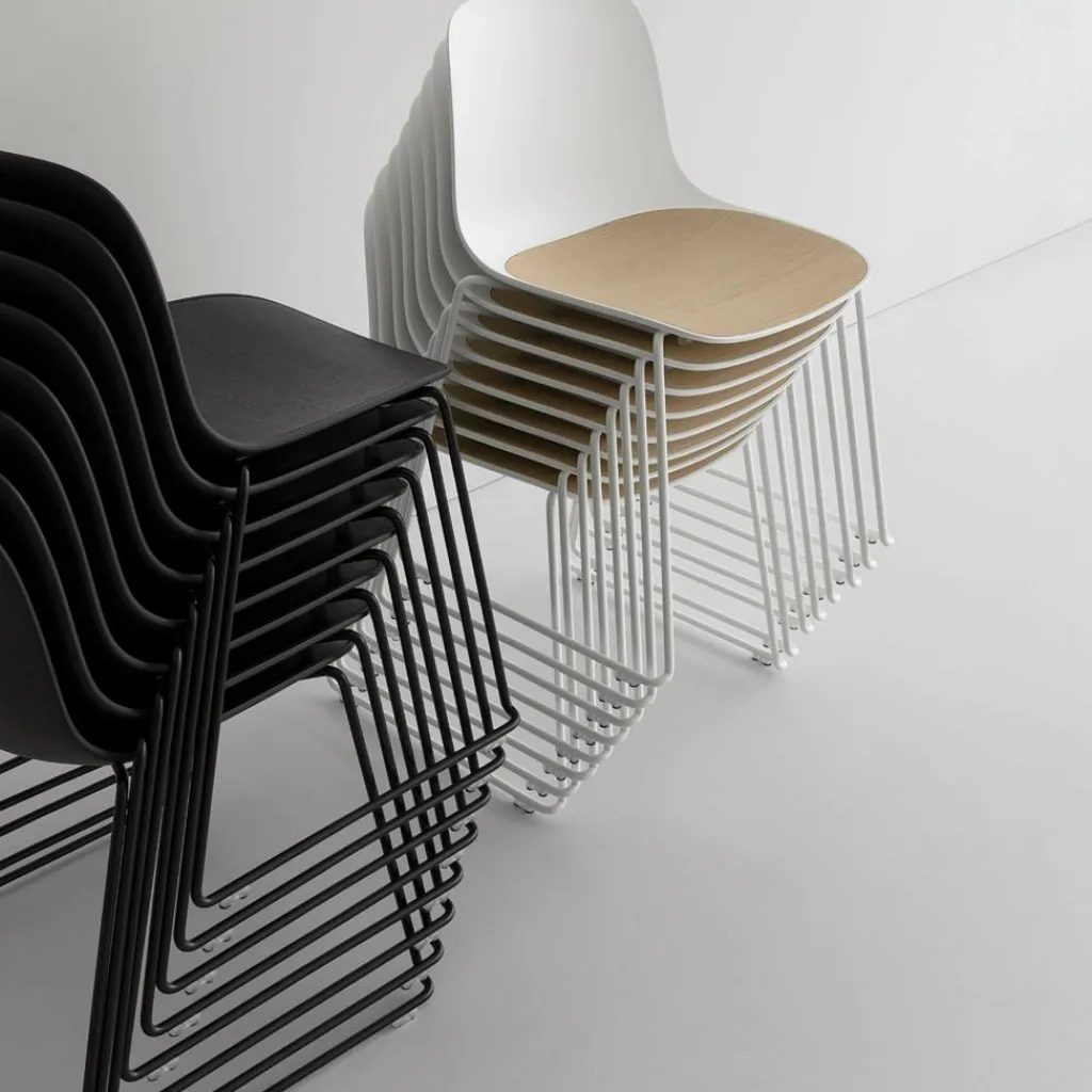 Der individualisierbare Seela S310 Stuhl mit Kufengestell Schwarz wurde von dem Designer Antti Kotilainen für die Marke la palma entworfen. Er vereint in seinem schlichten Profil zahlreiche funktionale Eigenschaften, was ihn zum perfekten Stuhl für Ihr Zuhause macht. So ist das Designerstück leicht, vielseitig verwendbar und bei Nichtgebrauch stapelbar. Optisch auffällig sind die Schlittenbeine.