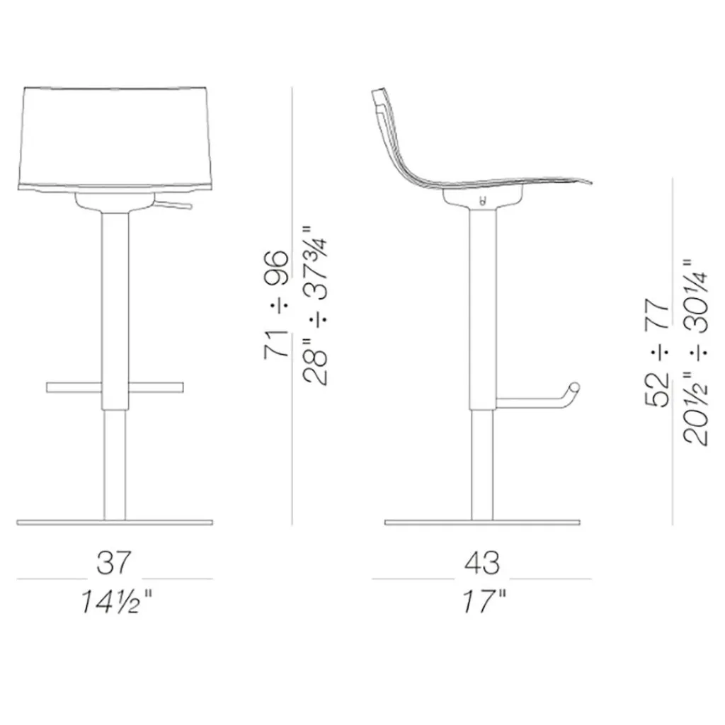 Lapalma Thin S24 Barhocker Sitzfläche Eiche 54-79cm| Barhocker