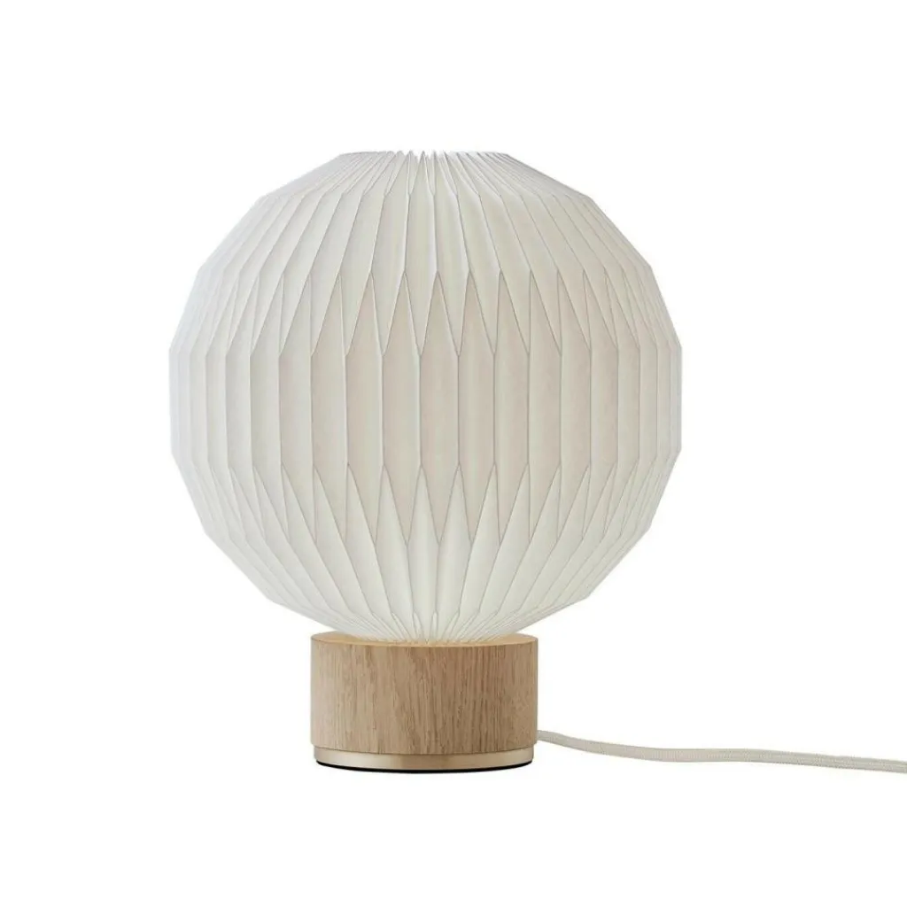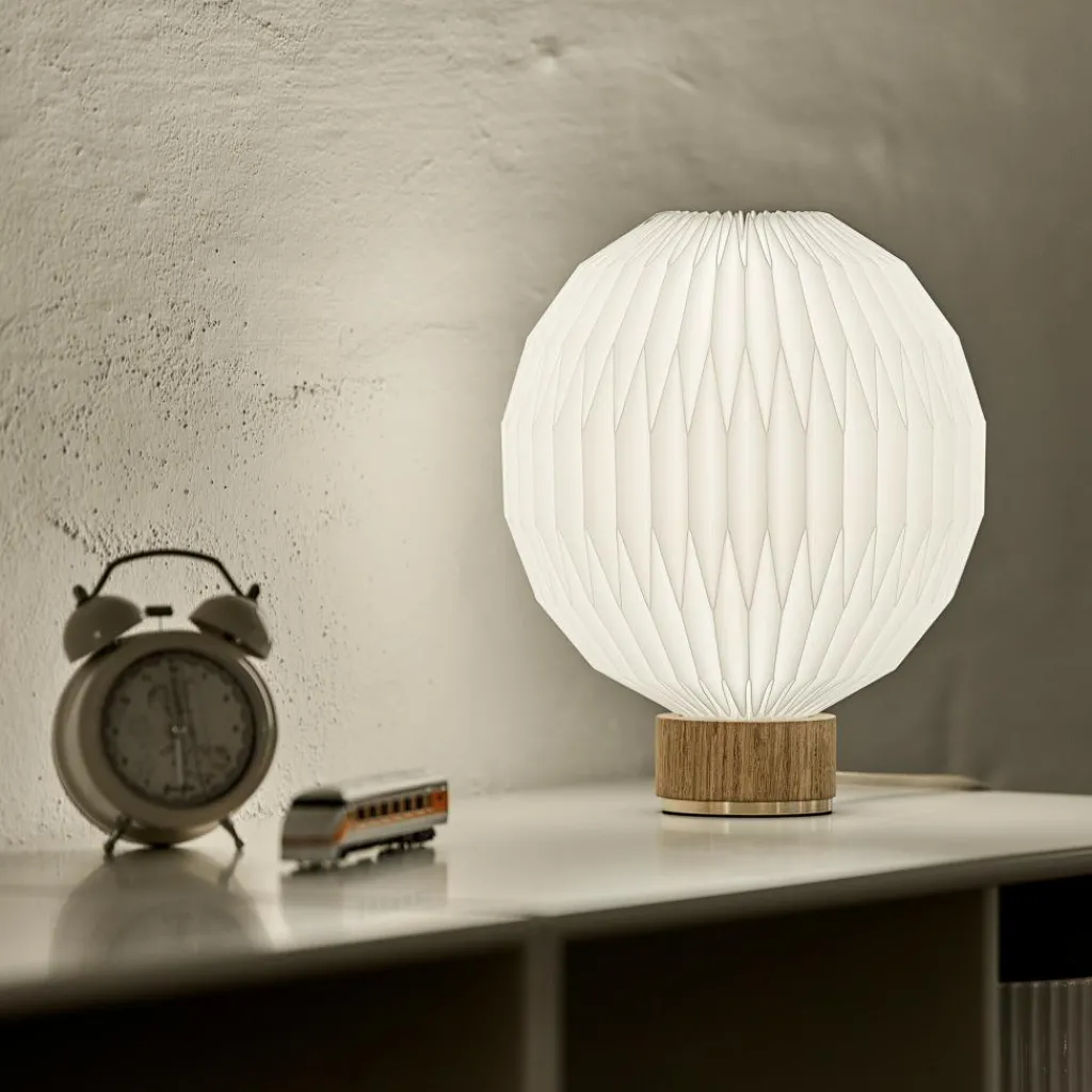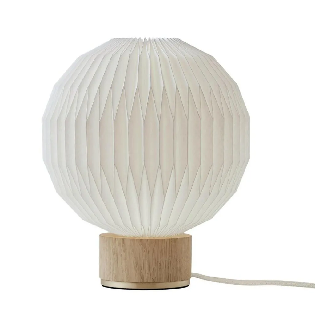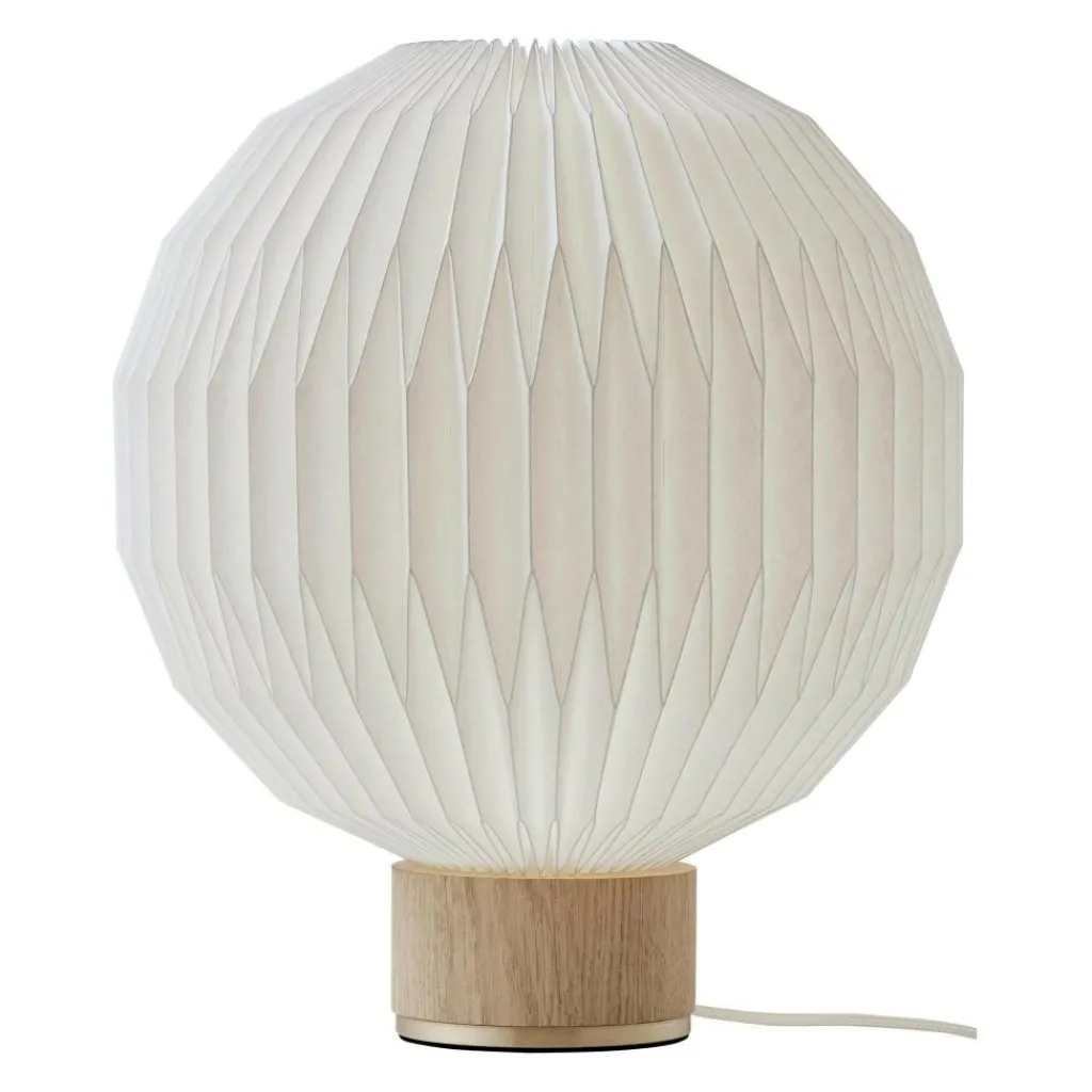 Die 375 Tischleuchte ist in verschiedenen Größen mit einer Höhe zwischen 21 und 38 cm und einem Durchmesser zwischen 18 und 33 cm erhältlich. Ein Schalter zum Ein- und Ausschalten ist an der Zuleitung verbaut. Das Kabel hat eine Länge von 160 cm. Die passenden LED-Leuchtmittel sind nicht im Lieferumfang enthalten. Neben der Ausführung mit Plastikschirm ist die Leuchte auch mit einem Schirm aus Papier erhältlich.