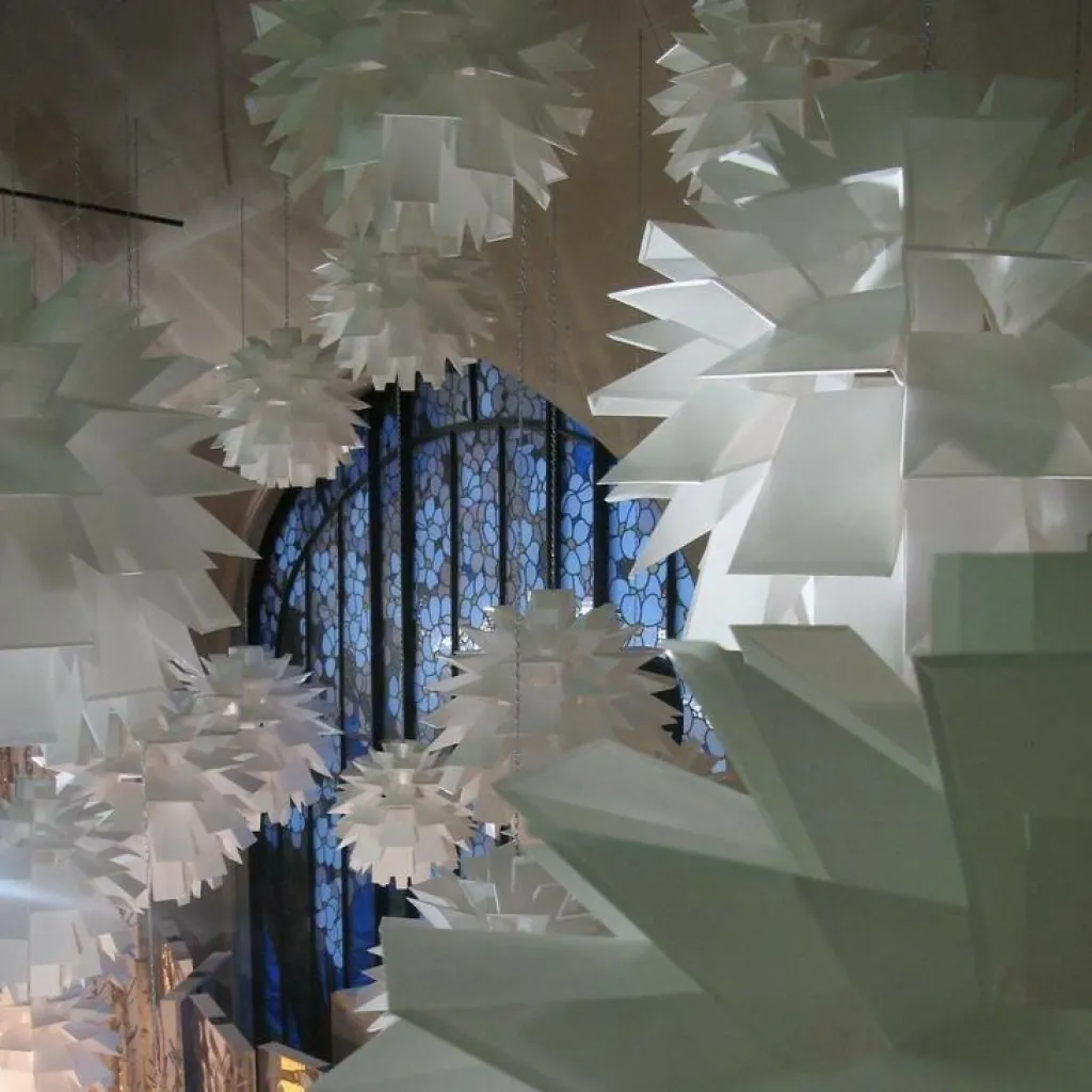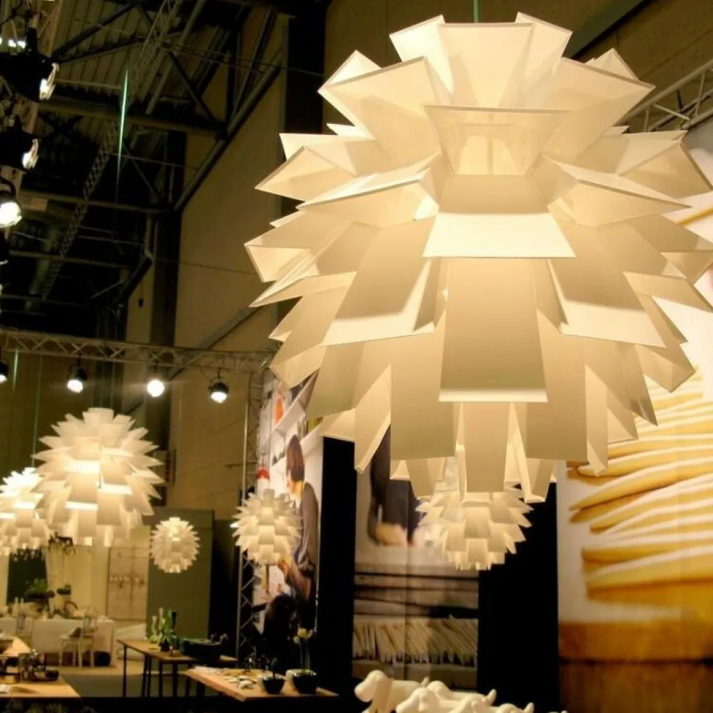 Sie besteht aus weißer Lampenschirm-Folie und wird mit 69 Teilen geliefert. In nur wenigen Minuten werden Sie das einfache Konzept verstehen, wie die Designleuchte zusammengesetzt werden muss. Dazu ist weder Leim noch Werkzeug nötig. Durch die weißen Elemente wird beste Lichtnutzung gewährleistet und die Norm 69 Module werden so zusammengesteckt, dass Sie nicht geblendet werden.