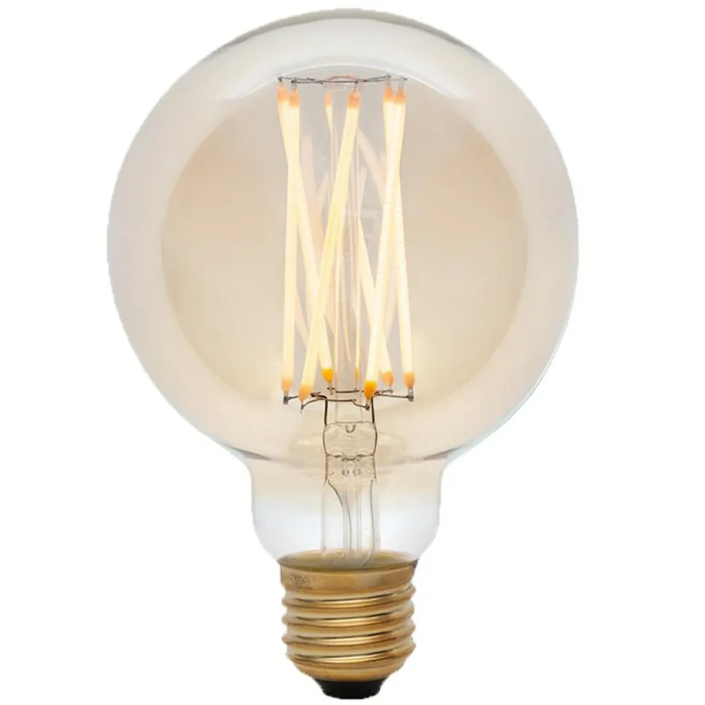 Auch wenn ein Hauch von Vintage mitschwingt, schenkt die kugelrunde Form des Elva LED E27 GLOBE FILAMENT 360° 6W => 41W jedem Interieur einen modernen Touch. Mit seiner E27-Fassung aus Messing ist das Leuchtmittel mit vielen gängigen Leuchten kompatibel. Das Licht ist angenehm warm und strahlt gleichmäßig in alle Richtungen ab. Eine Phosphorummantelung der Leuchtdrähte verhindert ein Blenden. Zudem schafft das getönte Glas des Leuchtmittels einen weichen Lichtschein. Der Elva-LED-GLOBE zeichnet sich durch eine hohe Energieeffizienz aus und ist darüber hinaus sehr langlebig. Damit ist das Leuchtmittel nicht nur für den privaten Wohnraum geeignet. Es passt auch perfekt in ein gemütliches Restaurant, eine Lounge oder die Lobby eines Designhotels. Auch für den Einsatz im Freien ist das Leuchtmittel geeignet, des es ist in Schutzklasse IP54 gefertigt.