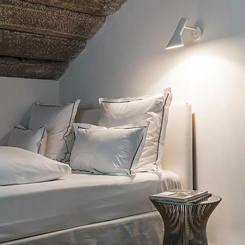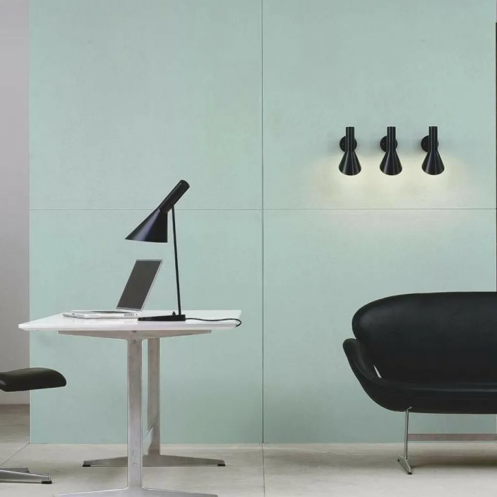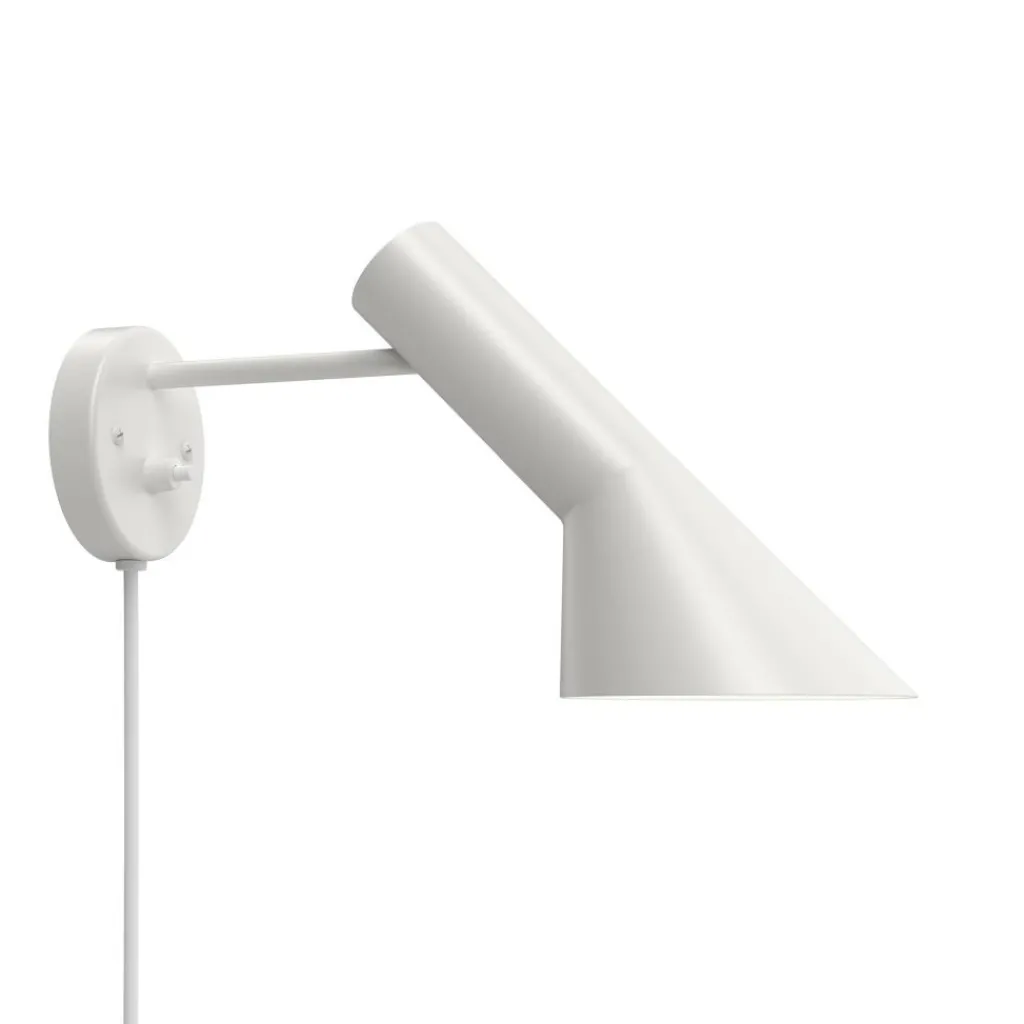 Die AJ Wandleuchte wurde von Arne Jacobsen für die Marke Louis Poulsen entworfen. Die schlichte Leuchte trägt die Initialen des Designers. Die Leuchtenserie wurde im Jahr 1957 für das SAS Royal Hotel in Kopenhagen entworfen. Zusammen mit der Pendelleuchte aus derselben Kollektion zählte sie zur Grundausstattung des Luxushotels. Mit der gekonnten Kombination aus schrägen und geraden Linien weist das Modell Ähnlichkeiten mit der Architektur des Hauses auf.