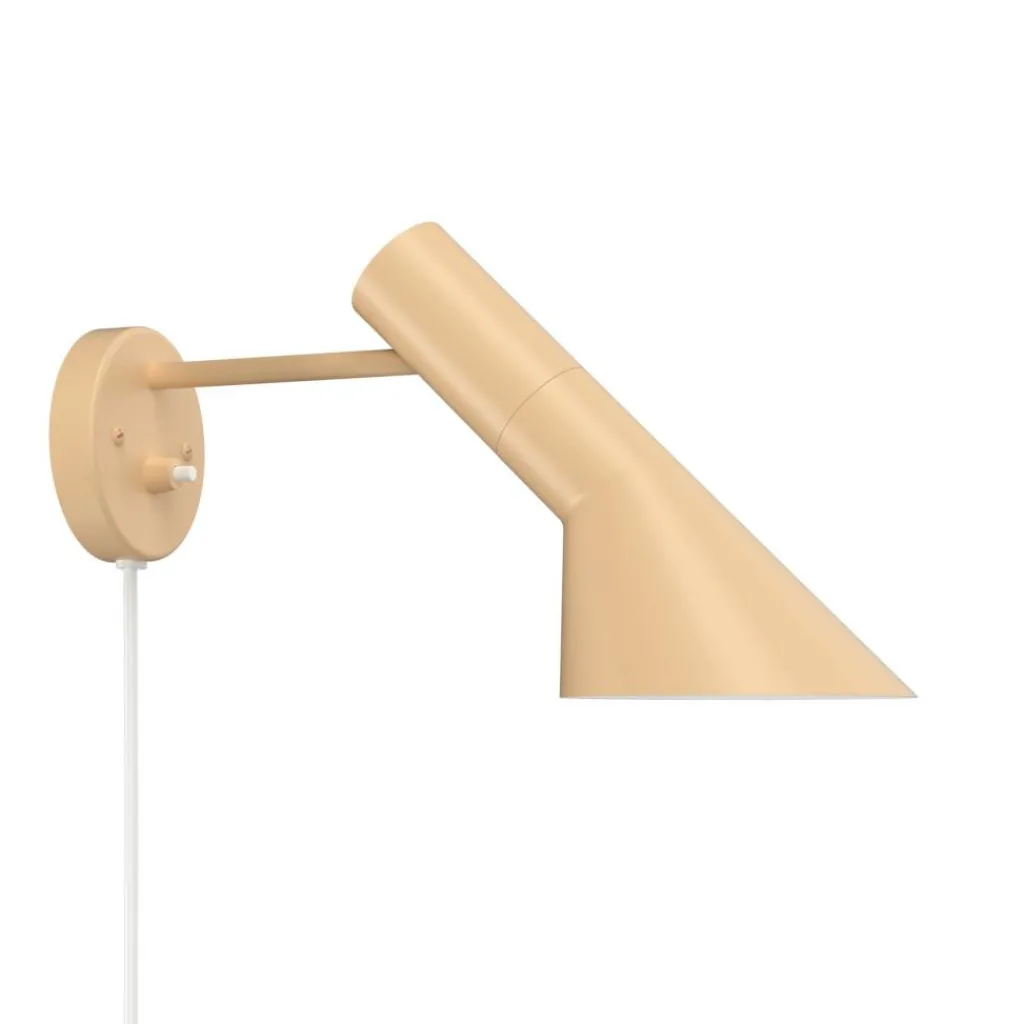 Mit minimalistischem Design zeichnet sich die AJ Wandleuchte aus. Eine Rosette dient zur Befestigung an der Wand. Sie hat einen Durchmesser von 9 cm. In der Wandhalterung ist der Schalter integriert. An einem daran angebrachten Standrohr ist der Leuchtenkopf montiert. Seine halbkonische Form macht die AJ Wandleuchte unverwechselbar. Da der Kopf kipp- und schwenkbar ist, kann der Lichtstrahl individuell ausgerichtet werden. Der Kopf und die Wanddose bestehen aus nasslackiertem Aluminium und das Rohr ist aus stranggepresstem Aluminium gefertigt. Die AJ Wandleuchte ist in verschiedenen Farben erhältlichen AJ Wandleuchte ist an der Innenseite weiß lackiert. In eine E-14 Fassung aus Porzellan wird das Leuchtmittel eingeschraubt.