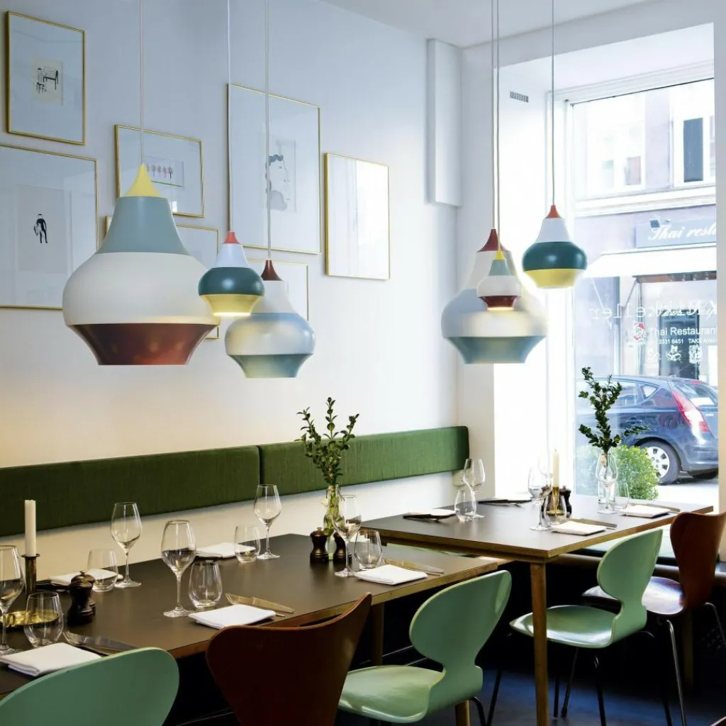 Die verspielte Cirque Pendelleuchte S wurde von der Designerin Clara von Zweigbergk für den Hersteller Louis Poulsen entworfen. Ein Ausflug im traditionsreichen Vergnügungspark „Tivoli“ in Kopenhagen lieferte die Inspiration für dieses attraktive Lichtobjekt. Die ineinanderfließenden Farben der rotierenden Karusselle und Glücksräder verschmolzen zu einer Leuchte, die Fröhlichkeit versprüht und stimmungsvolle Farben und Formen in einem neuartigen Design vereint.