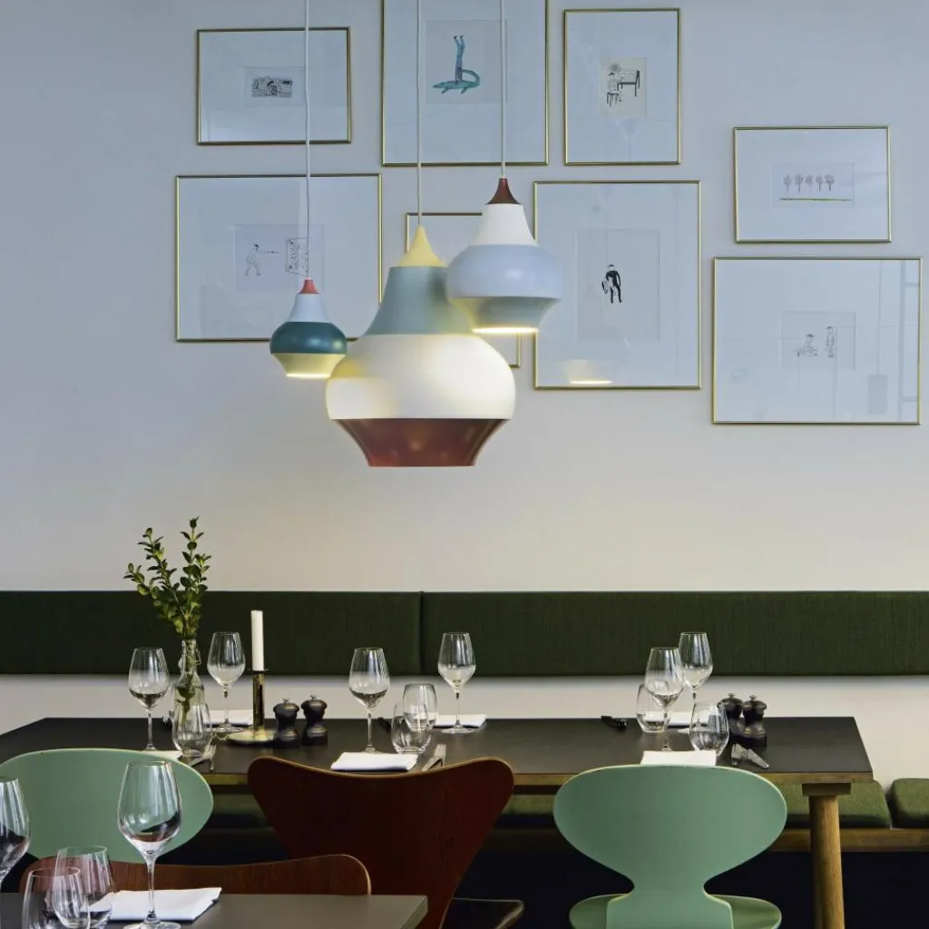 Die unorthodoxe Gestaltung der Cirque ist in drei Farbkombinationen zu bewundern: Die eine Variante besticht mit strahlenden Farben, während die beiden anderen Ausführungen in gedämpften Tönen gehalten sind. So können Sie mit einer einzelnen Hängeleuchte effektvolle Farbakzente setzen und Ihr Ambiente dekorativ verschönern. Die Cirque Pendelleuchte S macht das Licht zum kreativen Teil des Interieurs.