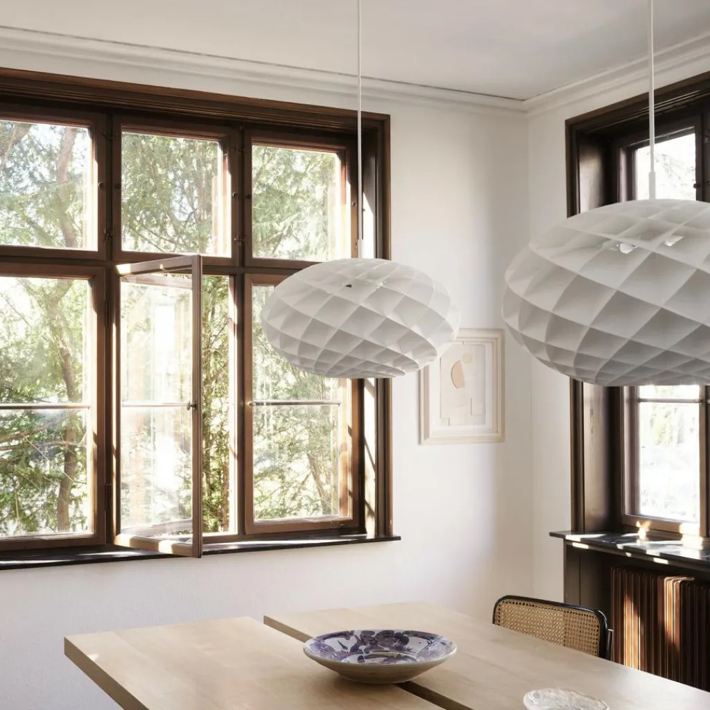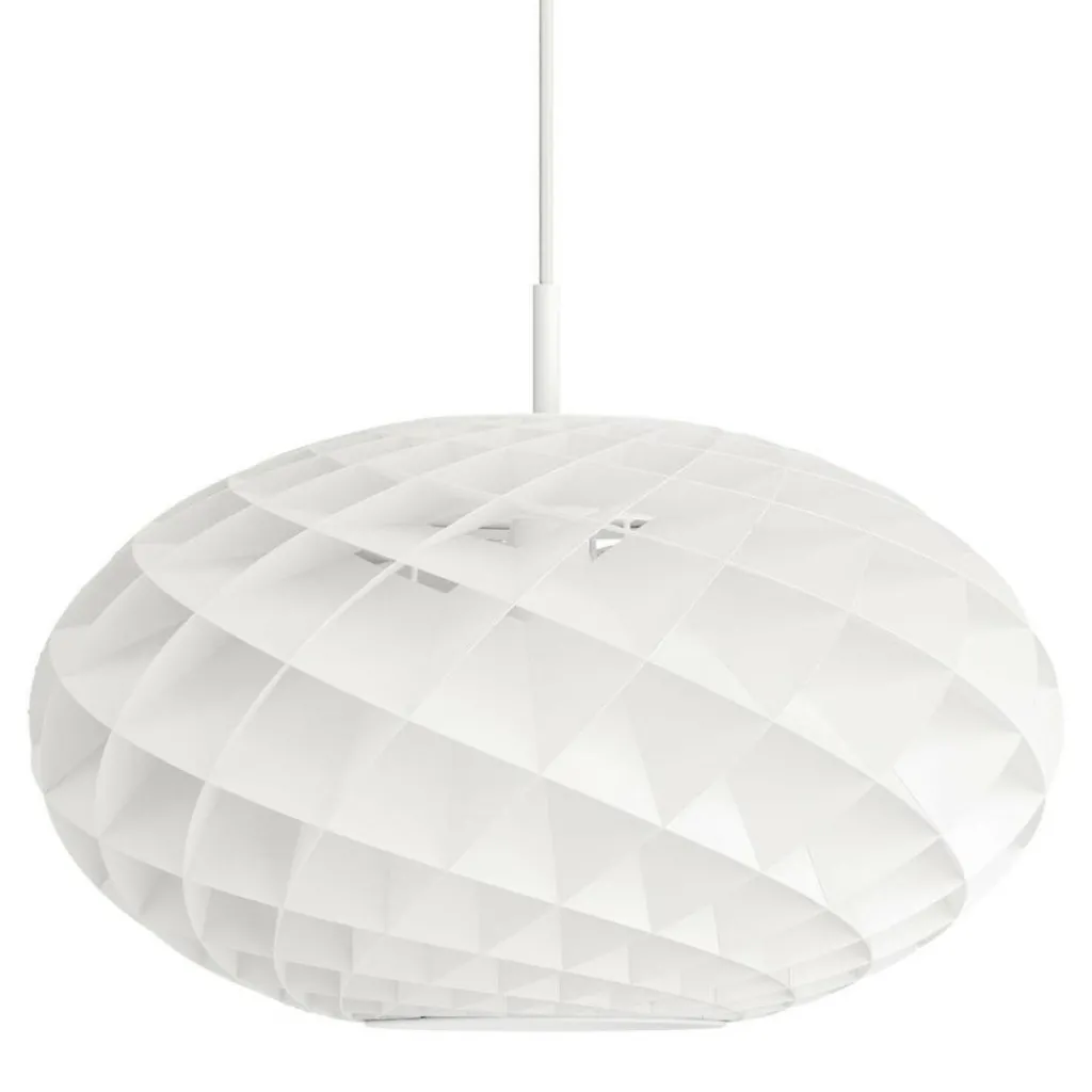 Die Patera Oval Pendelleuchte wurde von Øivind Alexander Slaatto für die Marke Louis Poulsen entworfen. Das ausgefallene Muster des Leuchtenschirms hat seine Form der Mathematik zu verdanken: Es ist der Fibonacci-Folge nachempfunden. Darunter versteht man eine fortlaufende Zahlenreihe, die sich durch das Zusammenzählen der vorangegangenen Zahlen ergibt.