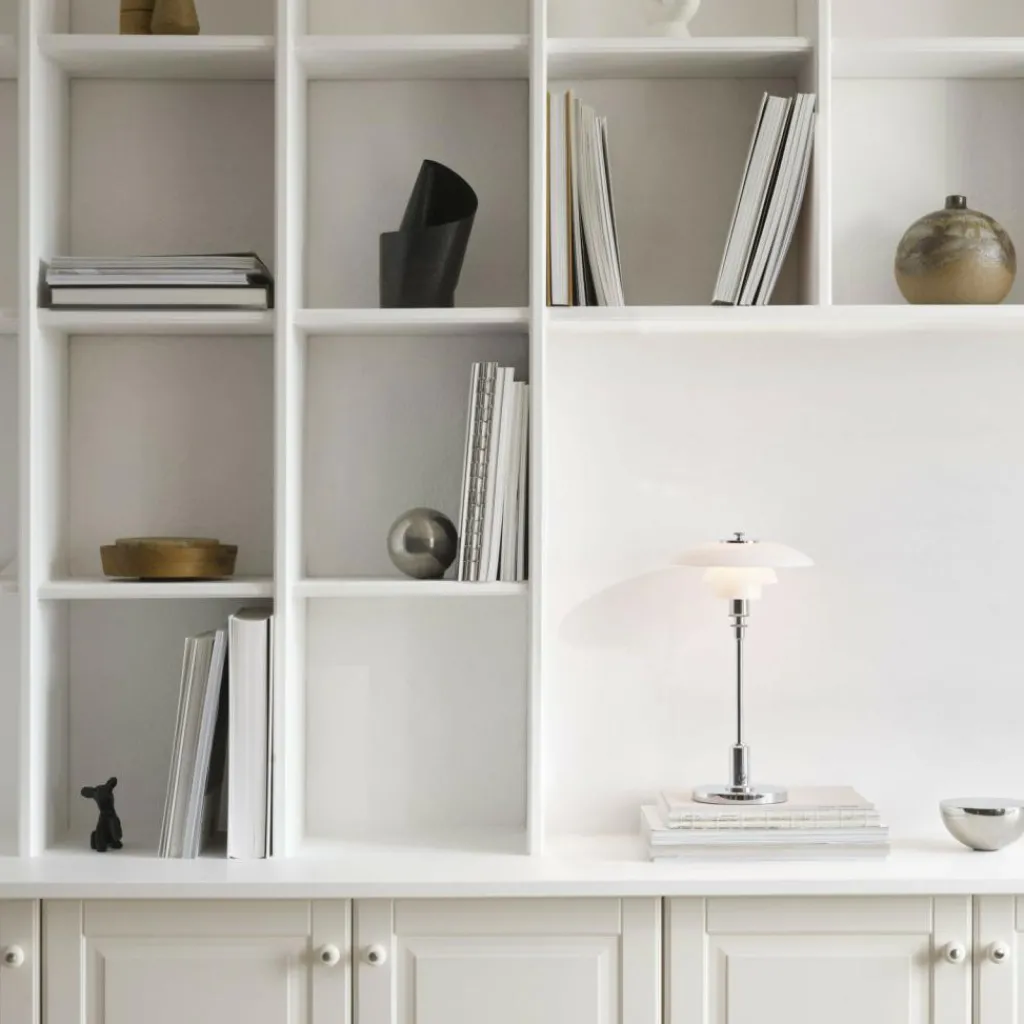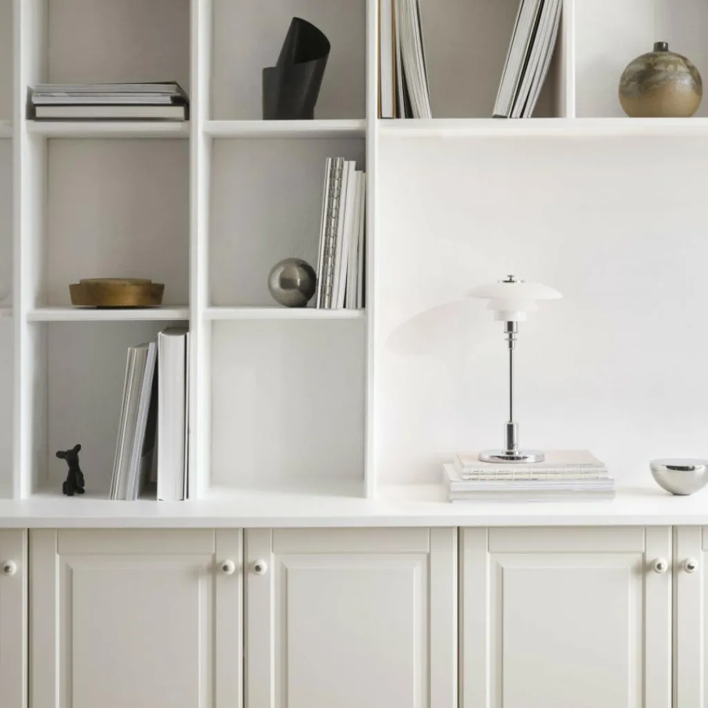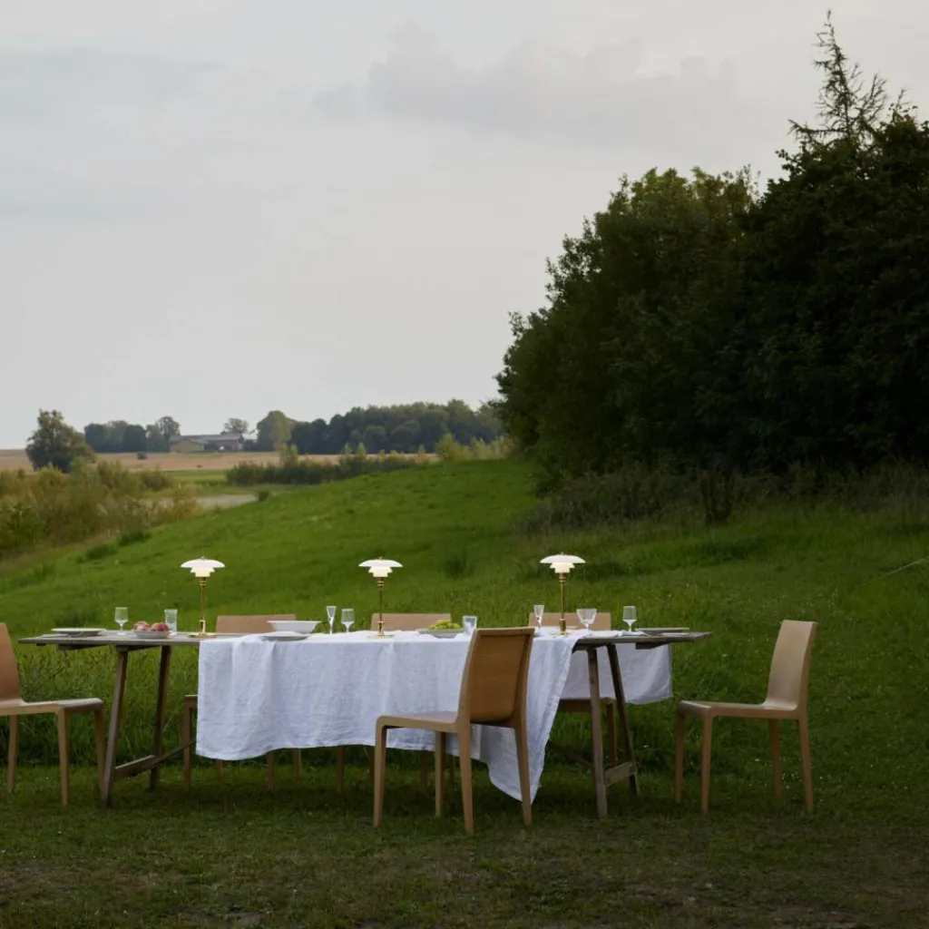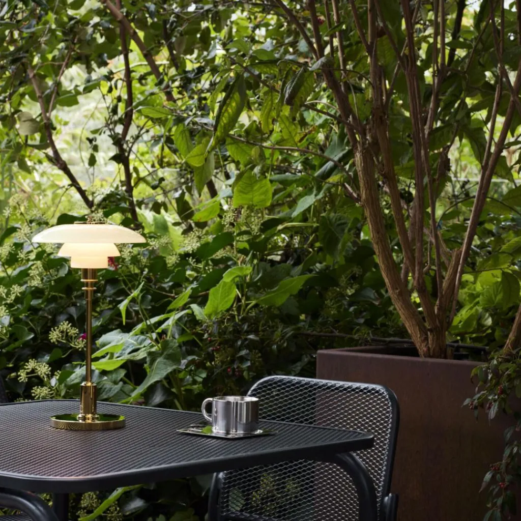 Die PH 2/1 Portable LED Akkuleuchte wurde von Poul Henningsen für die Marke Louis Poulsen entworfen. Es handelt sich um die kabellose Variante des Klassikers aus der Hand des dänischen Designers.