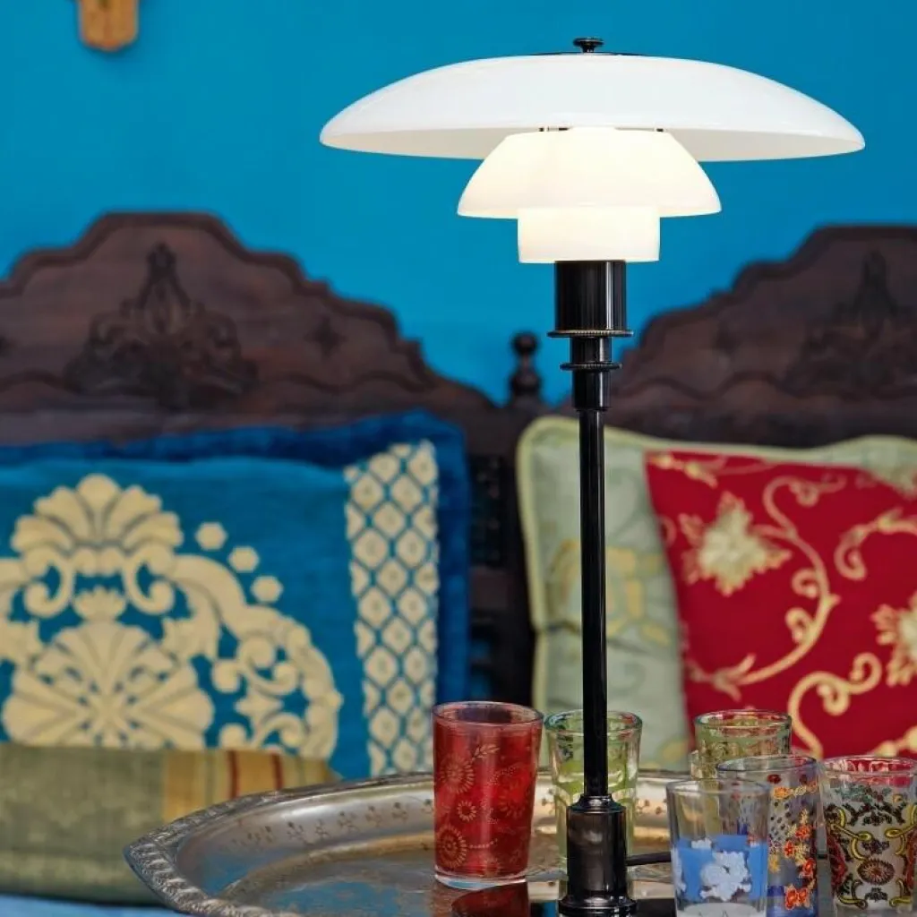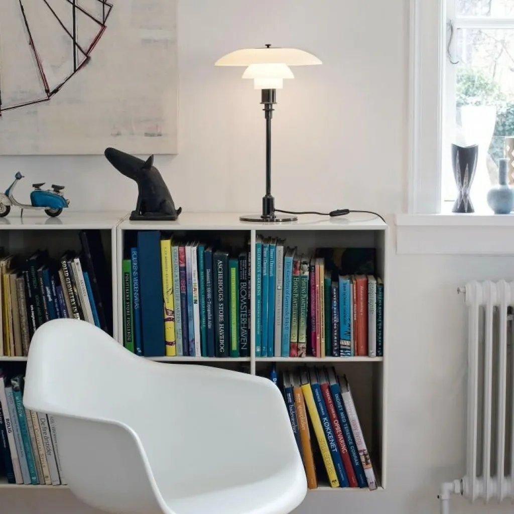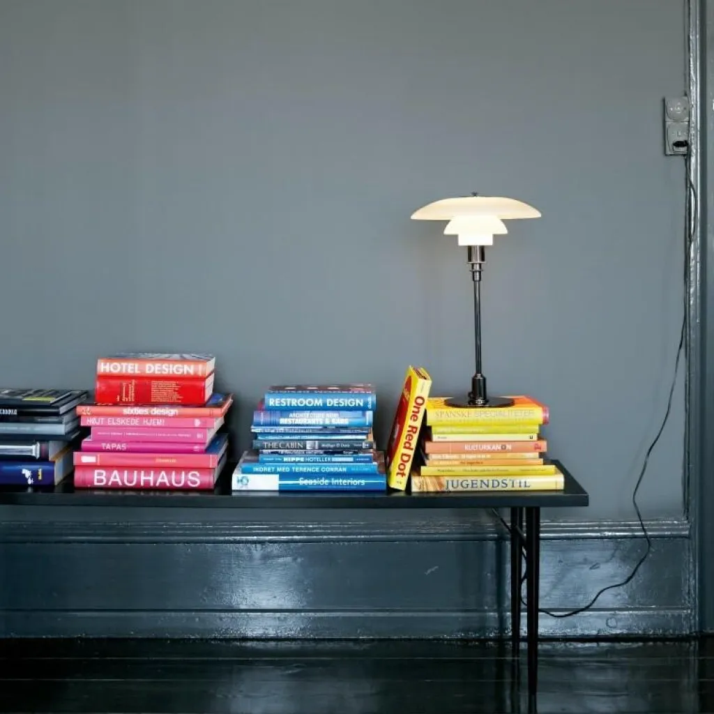 Die PH 3/2 Tischleuchte wurde von Poul Henningsen für die Marke Louis Poulsen entworfen. Sie gehört zu einer umfangreichen Kollektion, die auch Pendelleuchten umfasst. Mit der PH 3/2 Tischleuchte reagierte der dänische Designer auf die Innovationen der 1950er-Jahre. Damals veränderten sich die Leuchtmittel stark und man brauchte stilvolle Leuchten in allen Dimensionen.