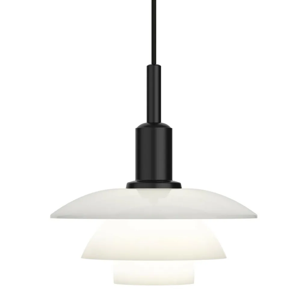 Die PH 3/3 Pendelleuchte Opalglas wurde von Poul Henningsen für die Marke Louis Poulsen entworfen. Die markante Dreischirmleuchte gehört zur PH-Leuchtenserie, die sich auf die Originalentwürfe aus den 1920ern stützt und mit einem Zahlenverhältnis bezeichnet werden, das das Größenverhältnis ihrer Schirme beschreibt.