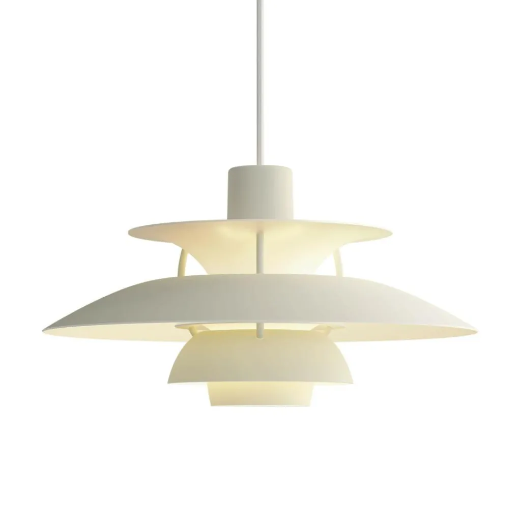 Die PH 5 Mini Monochrome Pendelleuchte wurde von Poul Henningsen für die Marke Louis Poulsen entworfen. Der dänische Designer Poul Henningsen studierte einst Architektur an der Technischen Schule Frederiksberg. Sein berufliches Interesse konzentrierte sich aber bald auf das Lichtdesign. Um an der Pariser Exposition Internationale des Arts Decoratifs & Industriels Modernes teilzunehmen, begann er mit dem Hersteller Louis Poulsen zusammenzuarbeiten. Im Folgejahr wurde die Leuchte, die aus dieser Kollaboration entstand, mit Begeisterung auf der Pariser Ausstellung aufgenommen.
