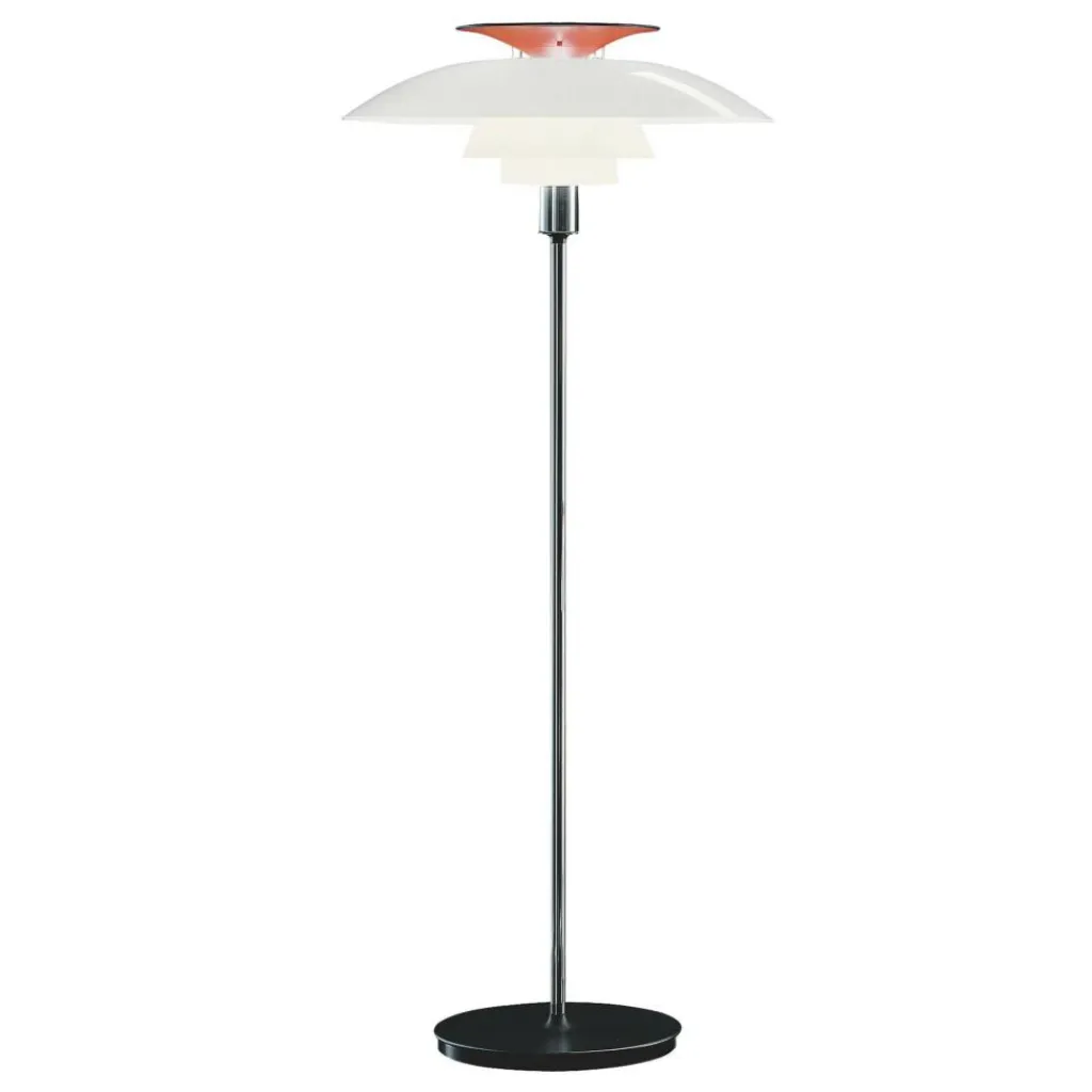 Die PH 80 Stehleuchte wurde von Poul Henningsen für die Marke Louis Poulsen entworfen. Das markante Designkonzept basiert auf dem Dreischirm-System, das der dänische Designer für die Weltausstellung in Paris 1925 entwickelte. Heute ist sie Teil der PH-Kollektion. Ihre Bezeichnung bezieht sich auf den 80. Geburtstag, den der Designer bei Veröffentlichung der PH 80 Stehleuchte im Jahr 1974 gefeiert hätte.