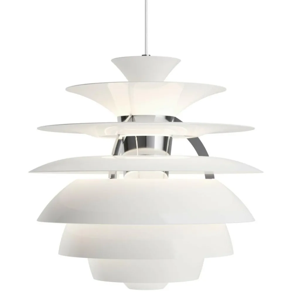 Die PH Snowball Pendelleuchte wurde von Paul Henningsen für die Marke Louis Poulsen entworfen. Sie ist Teil einer Kollektion, die auf dem Dreischirmsystem basiert. Der dänische Designer hat dieses Konzept in den 1920er Jahren entwickelt, um ein hundertprozentig blendfreies Licht zu erzeugen. Der Entwurf für das Modell PH Snowball stammt aus dem Jahr 1958.