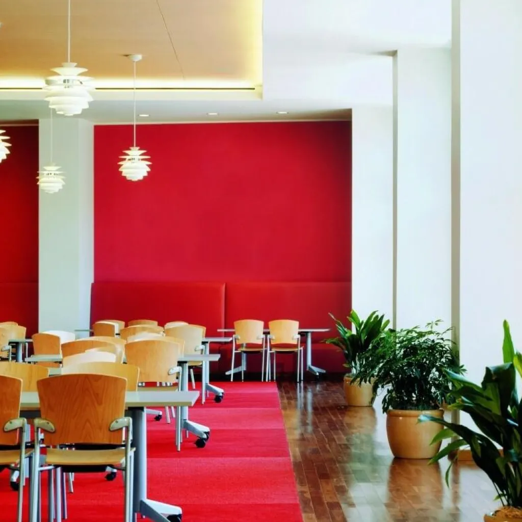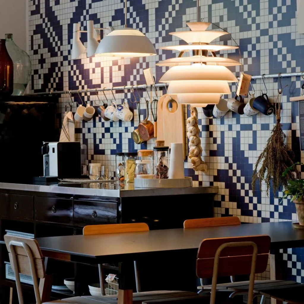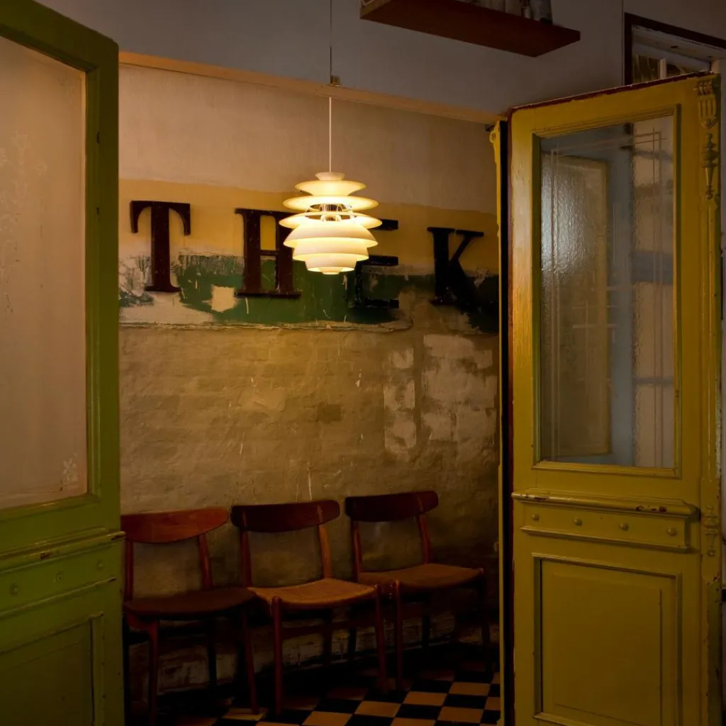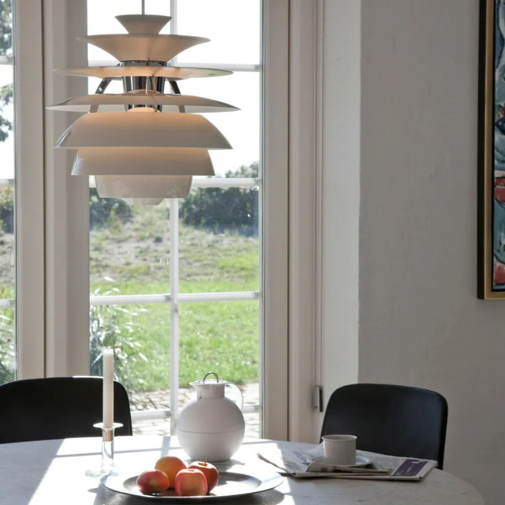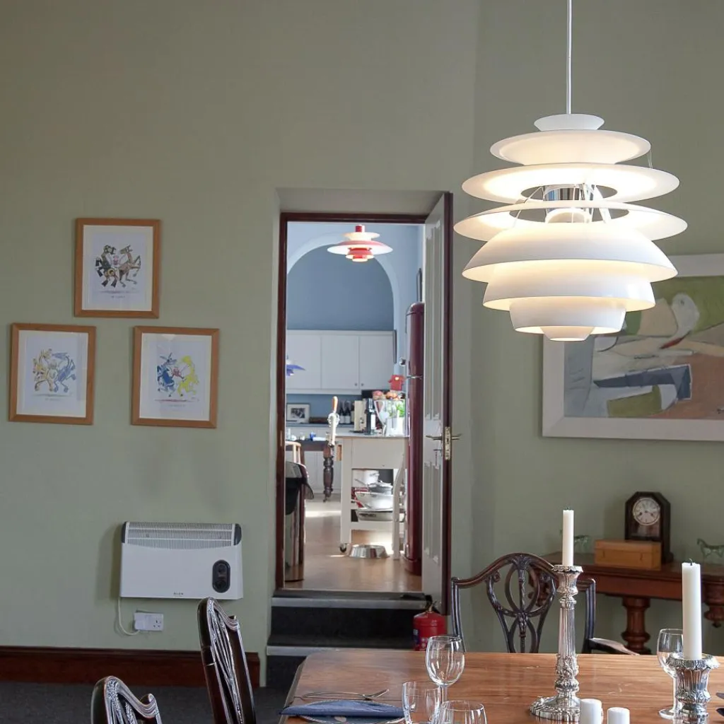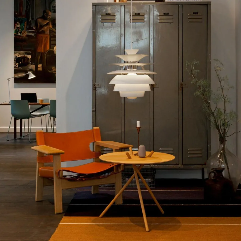 Ziel des Dreischirmsystems ist es, den größten Teil des Lichts nach unten zu leiten. Dort wird es reflektiert, wodurch auch die Leuchte selbst erstrahlt. Auch die PH Snowball Pendelleuchte nützt mehrere Schirme für die Erzeugung eines angenehm diffusen Lichtkegels und weicher Schatten. Mit ihrer kompakten Form ermöglicht die Designikone eine sphärische Lichtabstrahlung. Acht Aluminiumschirme lenken das Licht der PH Snowball Pendelleuchte. Sie sind lackiert und an der Unterseite mattiert. Dank ihrer lamellenartigen Anordnung verdecken sie die Sicht auf das Leuchtmittel vollständig. Während die unteren Lamellen einen sanften Lichtkegel nach unten werfen, ermöglichen die oberen Schirme eine vertikale Raumbeleuchtung. Damit eignet sich die PH Snowball Pendelleuchte für die Beleuchtung großer Räume. Sie passt in ein Restaurant, die Hotellobby, aber auch ins Wohnzimmer daheim.