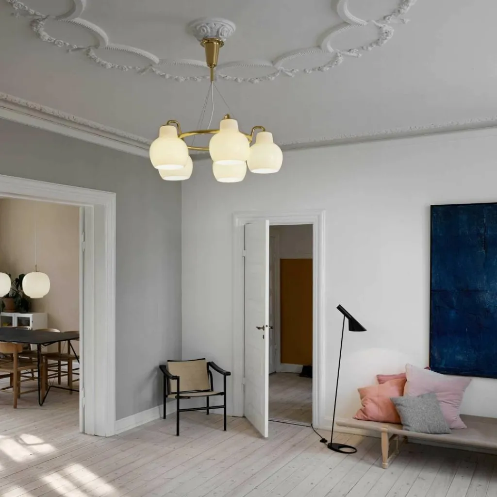 Das Ziel war es, eine Leuchte zu kreieren, die blendfreies Licht nach unten abgibt, besonders leicht zu reinigen ist und optisch eine neue Designära einläutet. Dieses Unterfangen gelang hier hervorragend, sodass sich auch die Neuauflage der Leuchte großer Beliebtheit erfreut. Sei es im Wohnzimmer oder im Essbereich – die VL Ring Crown 5 Pendelleuchte schafft es, den Glamour und die Aufbruchsstimmung der ersten Hälfte des 20. Jahrhunderts direkt in Ihre eigenen vier Wände zu bringen.