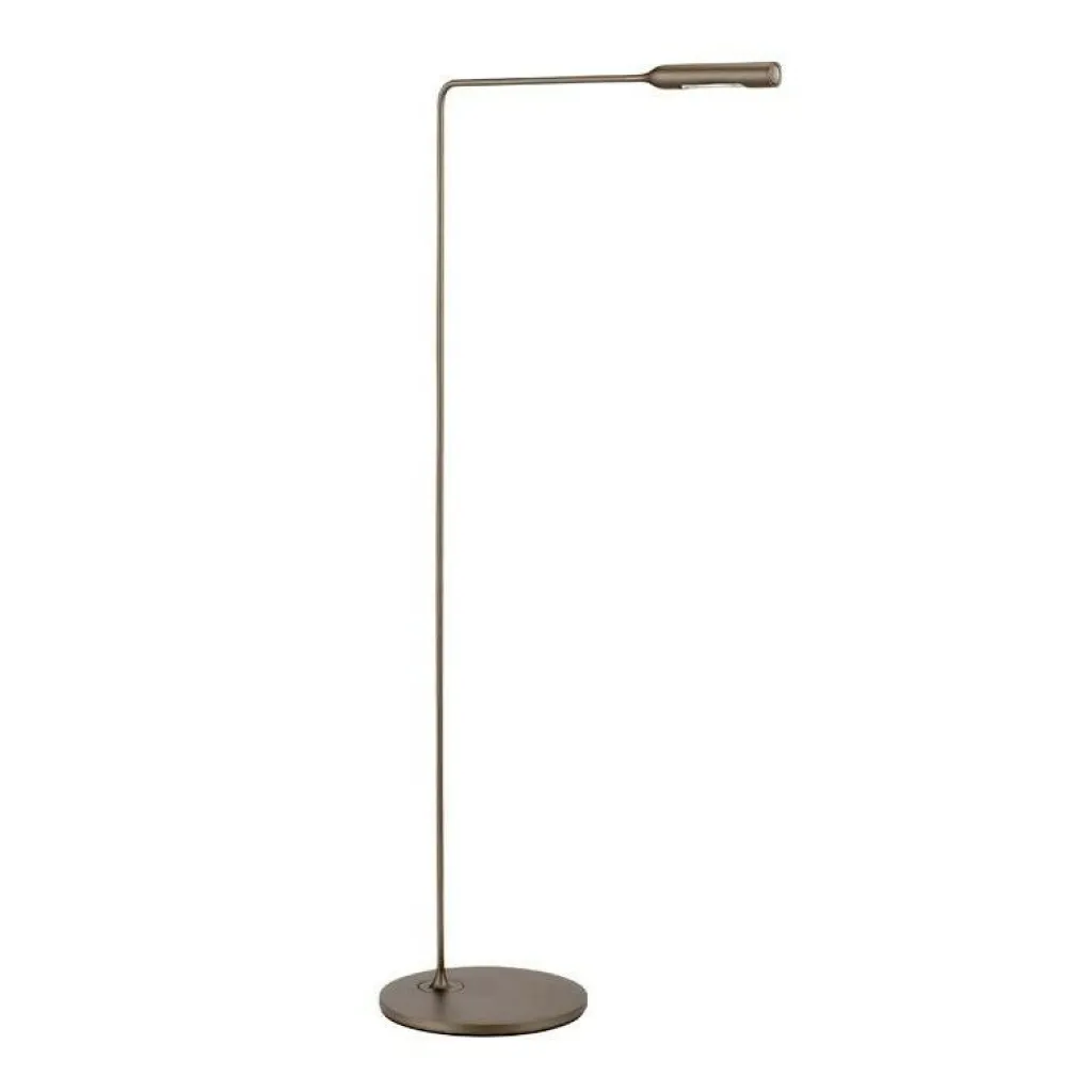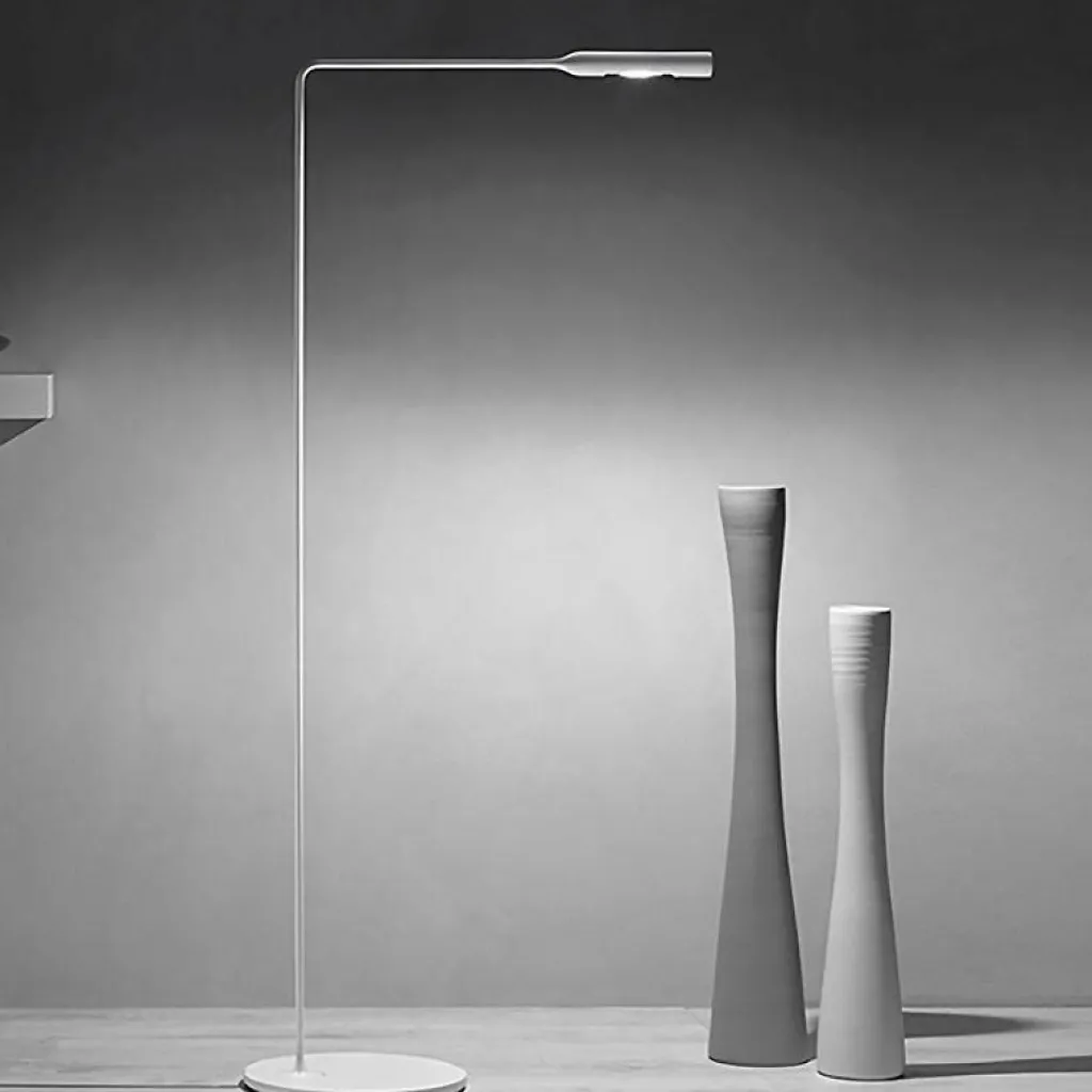 Zum Markenzeichen der Flo Floor LED Stehleuchte wird der stabförmige Leuchtenschirm. Darin ist der Schalter integriert. Betätigt man ihn einmal, erstrahlt das Leuchtmittel in voller Helligkeit. Bei zweimaligem Drücken wird die Intensität halbiert. Man kann den Leuchtenschirm um 300 Grad drehen und somit den Lichtstrahl beim Lesen oder Fernsehen im Wohn- oder Schlafzimmer individuell lenken. Das Gestell ist an der runden Basis aus Stahl um 120 Grad drehbar. Es wird aus Aluminium gemacht. Der Arm ragt in die Höhe und beschreibt einen rechten Winkel. Von hier führt er mit einer Länge von 42 cm zum Leuchtenschirm. In die Flo Floor LED Stehleuchte sind LEDs integriert, die warmweißes Licht nach unten abgeben. Man kann die Flo Floor LED Stehleuchte in verschiedenen Farben und mit unterschiedlichen Oberflächen bestellen.