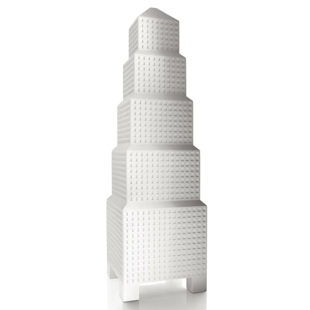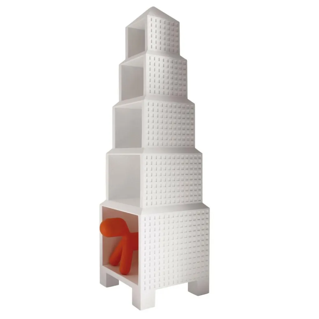 Der Me Too Downtown Regalturm wurde von Oiva Toikka für den Hersteller Magis entworfen. Me Too ist das Label für die Magis-Kollektion für Kinder, doch dieser Regalturm in Form eines Wolkenkratzers sieht auch in einem Studentenzimmer oder jedem anderen modernen Wohnraum fantastisch aus.
