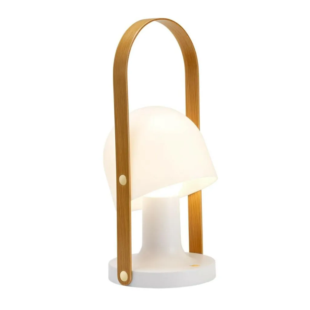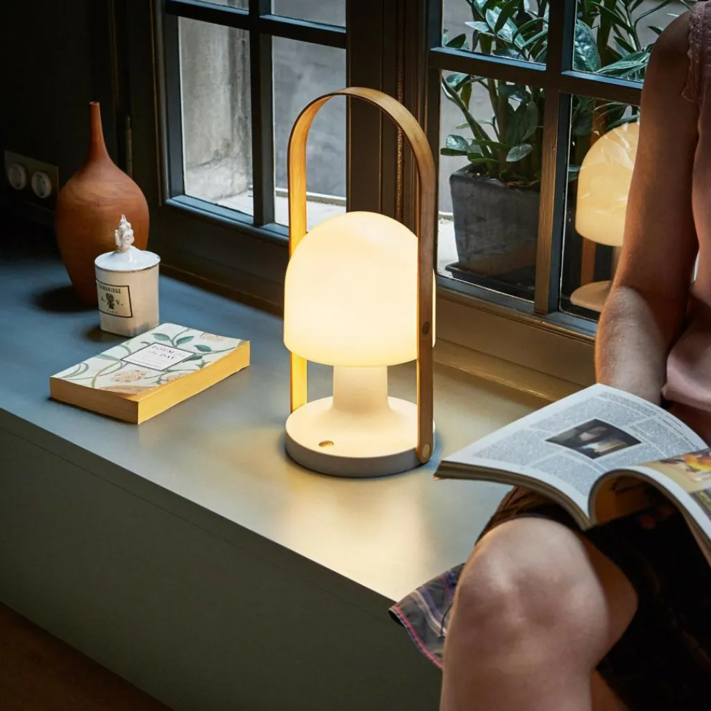 Dank der innovativen Ausrüstung mit einer wiederverwendbaren Batterie kann der Nutzer die stylische, handliche Lampe einfach transportieren. Sie verfügt über einen dekorativen, praktischen Henkel aus Eichenholz, der es ermöglicht, die mobile Leuchte wie eine antike Milchkanne zu tragen. Unter der milchig-weißen, schwenkbaren Haube verbergen sich energiesparende Leuchtdioden. Der Einsatz modernster Technik erlaubt es, die Follow Me mobile LED-Leuchte mit Akku nach Bedarf stufenlos zu dimmen. Die Lithium-Ionen-Batterie wird einfach mittels USB-Anschluss aufgeladen, sodass die mobile LED-Leuchte überall im Haus, im Garten und sogar auf Reisen genutzt werden kann. Voll aufgeladen ist die Leuchte des spanischen Herstellers Marset fünf Stunden bei maximaler Lichtstärke einsatzfähig. Besonders der mobile Einsatz im Garten zeichnet diese schöne, für den Außenbereich geeignete Lampe aus.