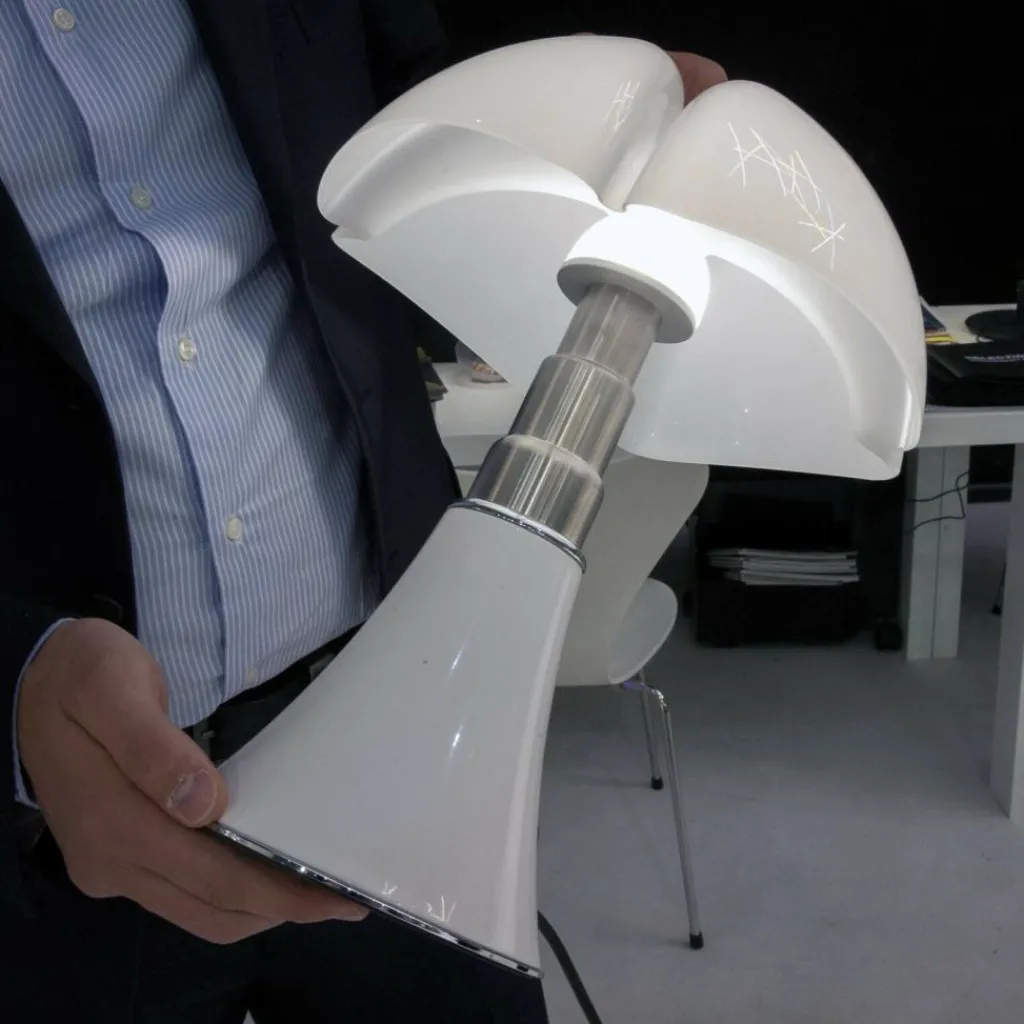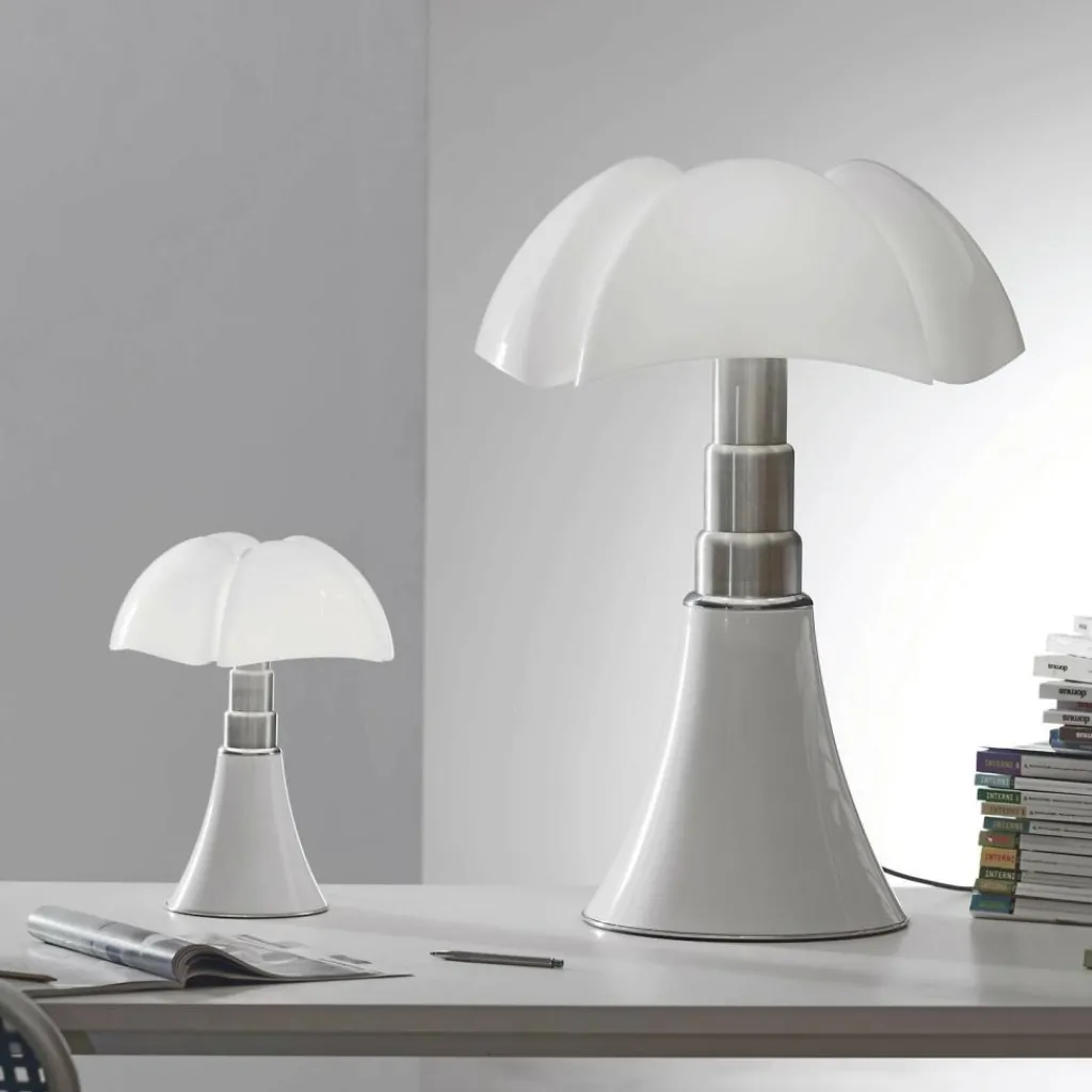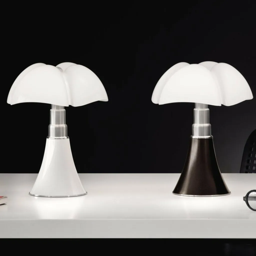Die Designerin Gae Aulenti hat mit der Martinelli Pipistrello eine Tischleuchte mit Kult-Charakter kreiert, die auch in der kleinen Re-Edition begeistert.