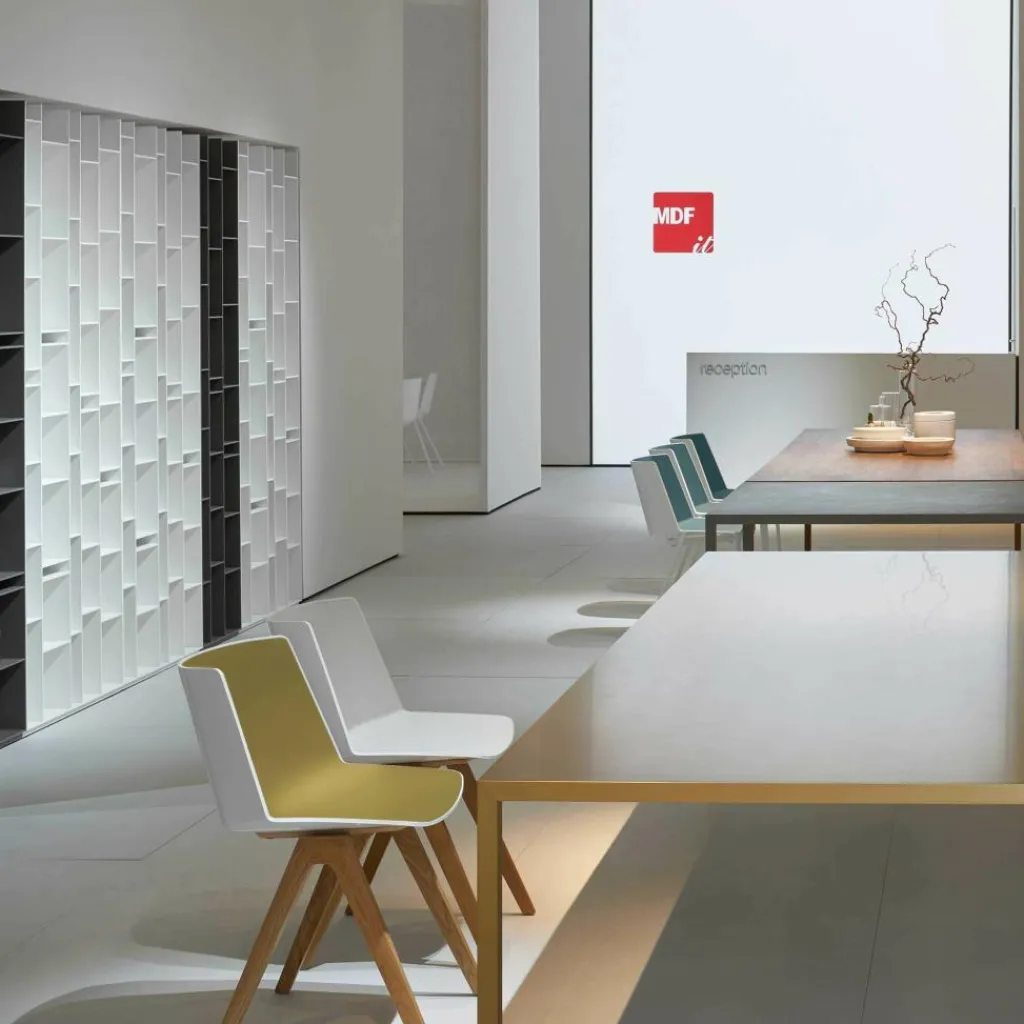 Der Aïku Stuhl mit Beinen aus Eiche wurde von Jean-Marie Massaud für die Marke MDF Italia entworfen. Er ist Teil einer modernen Kollektion, die von einer japanischen Gedichtform inspiriert ist. So wie ein Haiku mit wenigen Worten bemerkenswerte Bedeutungen zum Ausdruck bringt, so zeigt auch die einfache und klare Formensprache des Aïku-Stuhls eine komplexe Funktionalität.