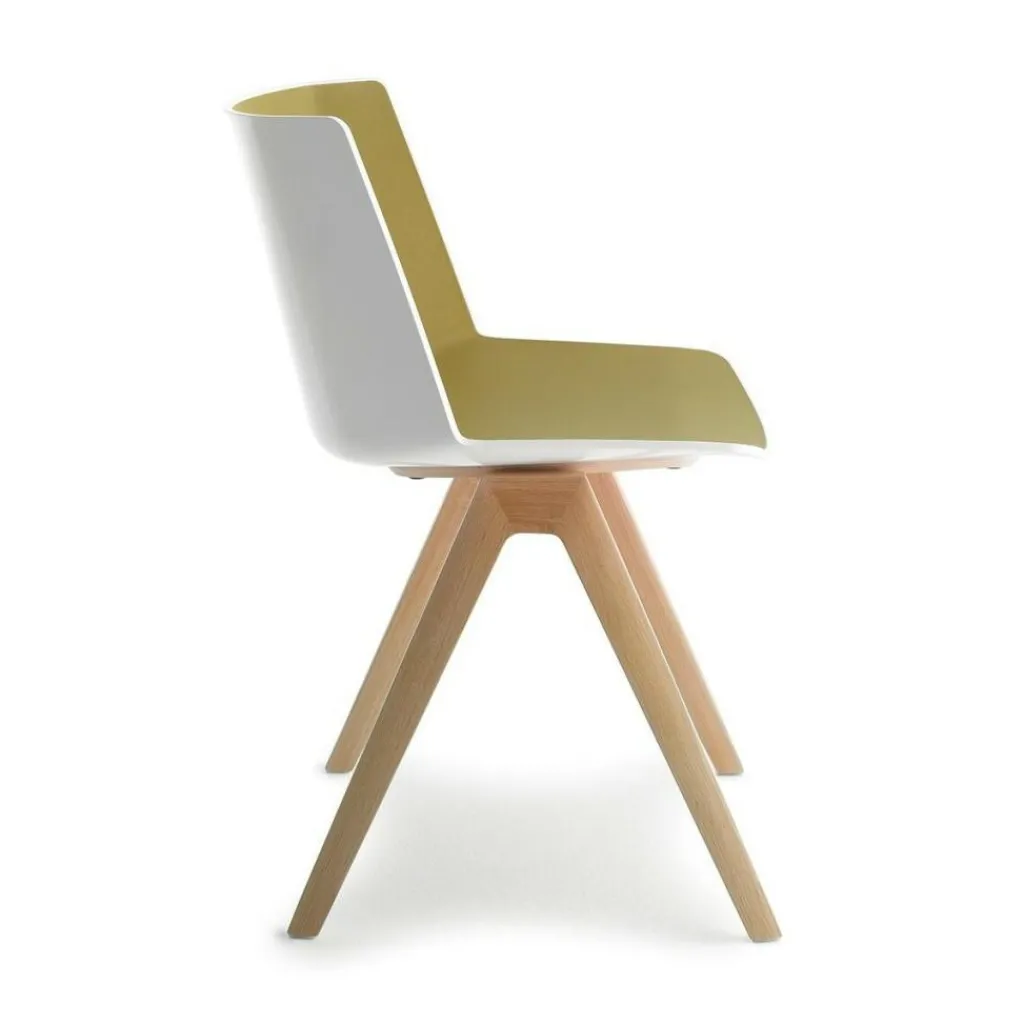 Mit seiner Schale aus hochwertigem Polypropylen und dem edlen Eichenholzgestell ist dieser Aiku-Stuhl nicht nur von einer hohen Stabilität und Belastbarkeit geprägt. Er fällt auch mit einer extravaganten Optik auf. So sticht seine Sitzschale mit verschiedenen Oberflächen ins Auge: Ihre Außenseite glänzt, die Innenseite ist mattiert; verschiedene Farben schenken dem Sitz zudem einen eleganten Charakter. Gleichzeitig schafft das vierbeinige Untergestell mit seinen weit ausgestellten, nach unten hin schmaler werdenden Beinen und der hellen Farbe einen stylishen Blickfang. So passt der Aïku Stuhl mit Beinen aus Eiche in ein modernes Café oder die Betriebskantine. Er eignet sich als Zimmerausstattung eines Hotels oder für das Wohnzimmer.