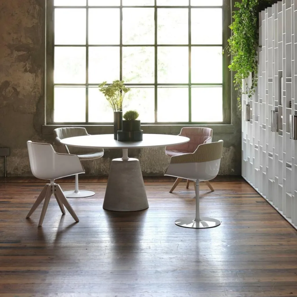 Der Sitzkomfort bleibt beim 360° drehbaren Flow Slim Armlehnstuhl von MDF Italia unübertroffen. Der Tellerfuß hat einen Durchmesser von 44cm und bildet zusammen mit der Sitzschale aus Polykarbonat ein harmonisches Design.