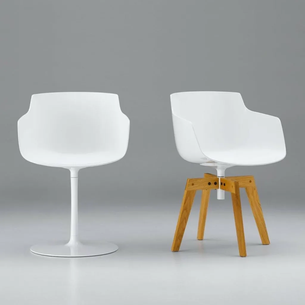 Die Flow Slim Armlehnstühle von MDF Italia besitzen starken Design-Charakter und sind vielseitig verwendbar. Der Flow Slim Armlehnstuhl mit Tellerfuß eignet sich fürs Esszimmer ebenso wie fürs Arbeitszimmer und sieht auch in Agenturen, Büros und stylischen Restaurants toll aus.