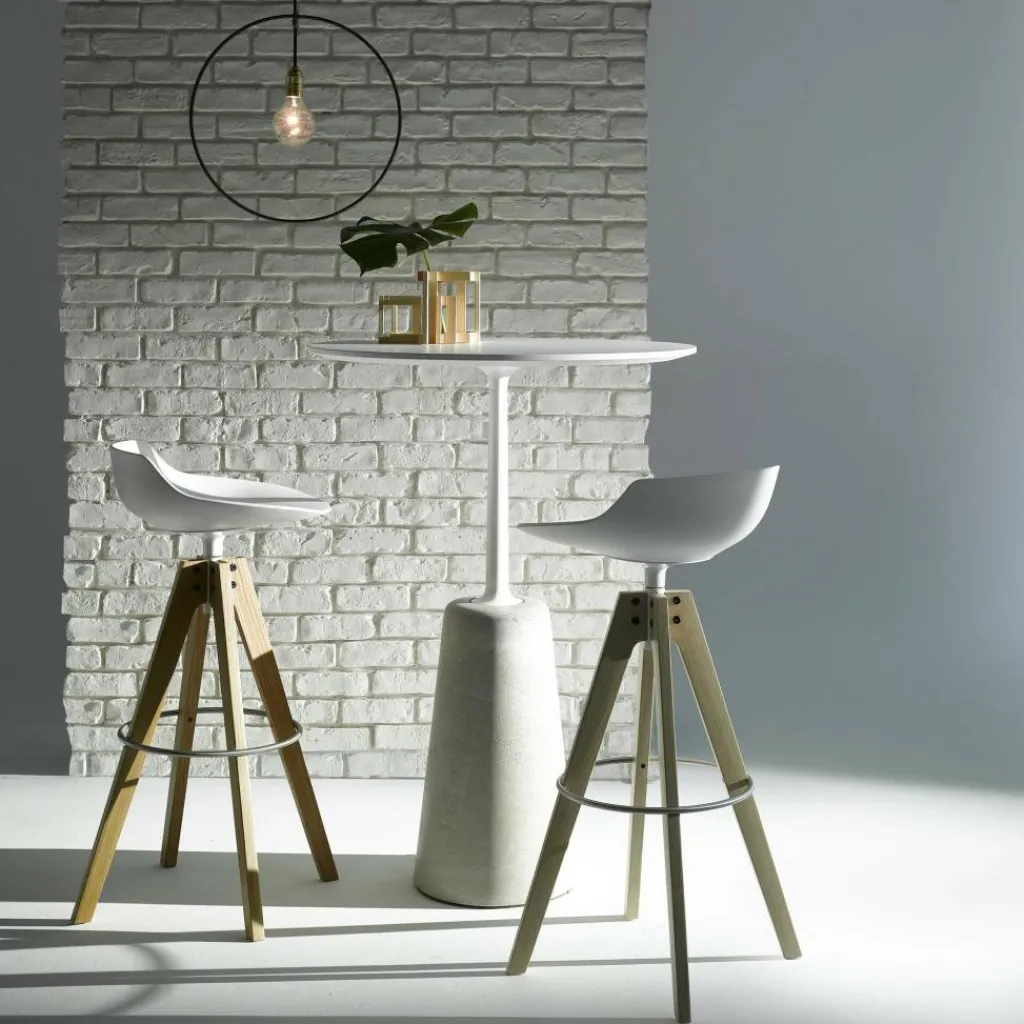 Der Rock Bartisch wurde von der französischen Design-Ikone Jean-Marie Maussaud für den Hersteller MDF Italia entworfen. Die Kühnheit der Entwürfe des Designers genießt teilweise Weltruf. Der Rock Bartisch steht dafür geradezu exemplarisch und vereint so unterschiedliche Baustoffe wie eine mitteldichte Holzfaserplatte und den massiven Betonfuß zu einer einzigartigen, gewagten, aber sehr überzeugenden Gesamtkomposition.