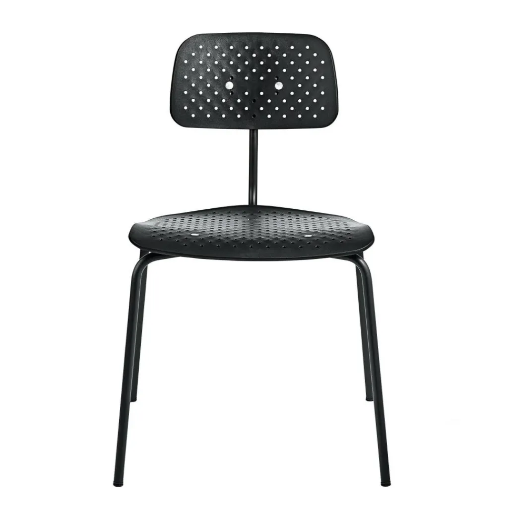 Mit seinem Gestell aus gebogenem Rundstahl ist der Kevi 2060 Air Stuhl ein klassisches Sitzmöbel, das sich durch eine platzsparende Einsatzfähigkeit und hohe Stabilität auszeichnet. Die gelochten Kunststoffteile, die seinen Sitz sowie die Rückenlehne bilden, machen ihn zu einem modernen Designstück. Die Lehne ist leicht gewölbt und auch die Vorderkante der Sitzfläche ist sanft gerundet. Damit verspricht der Kevi 2060 Air Stuhl einen angenehmen Komfort auch bei längerem Sitzen. Der formschöne Designstuhl ist eine praktische Sitzgelegenheit für spontanen Besuch und passt zusammen mit weiteren Kevi-2060-Exemplaren ebenso in die Kantine im Büro wie an den Küchentisch daheim.