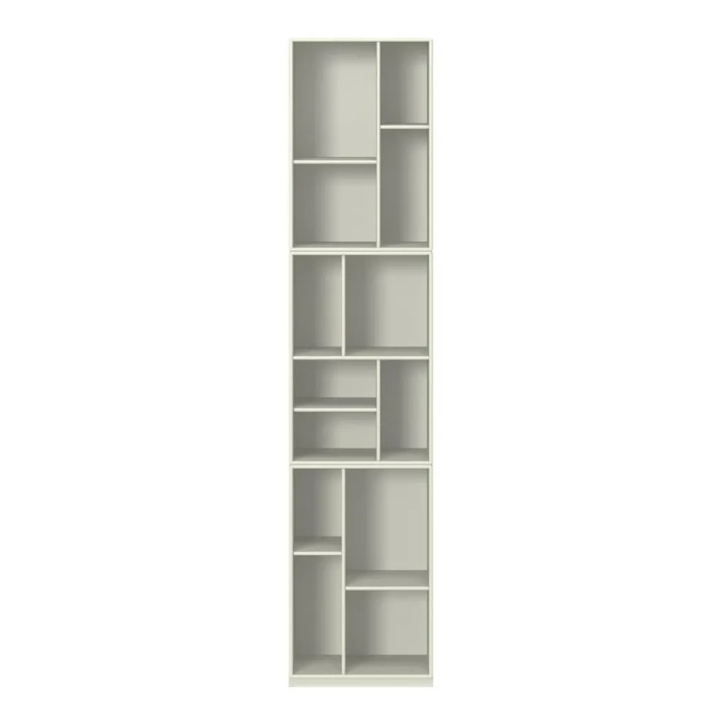 Das schmale Loom Bücherregal wurde von Designer Peter J. Lassen für die Marke Montana entworfen. Es bietet viele verschiedene Möglichkeiten, um Bücher und andere Dinge aufzubewahren und zu präsentieren. Das hohe Bücherregal besitzt verschieden große Fächer. Seine Asymmetrie macht dieses Regal so besonders.