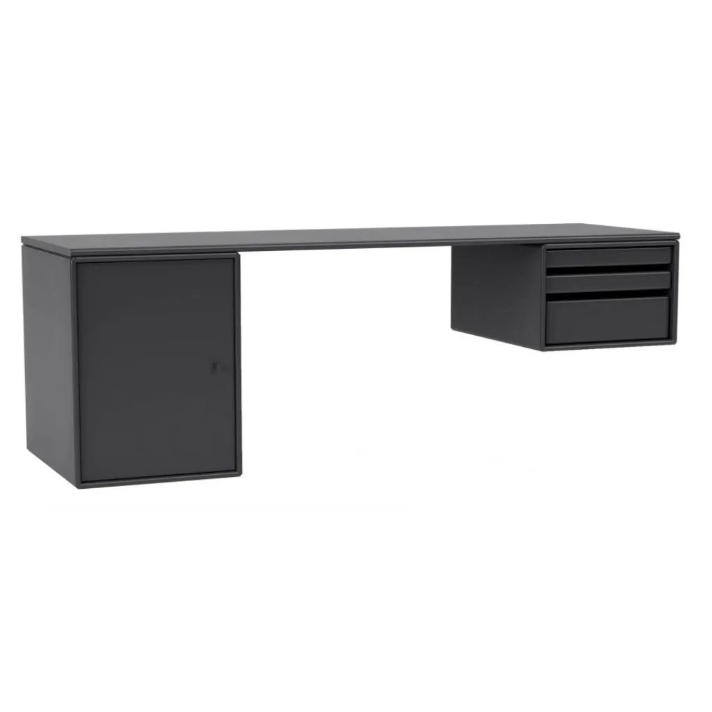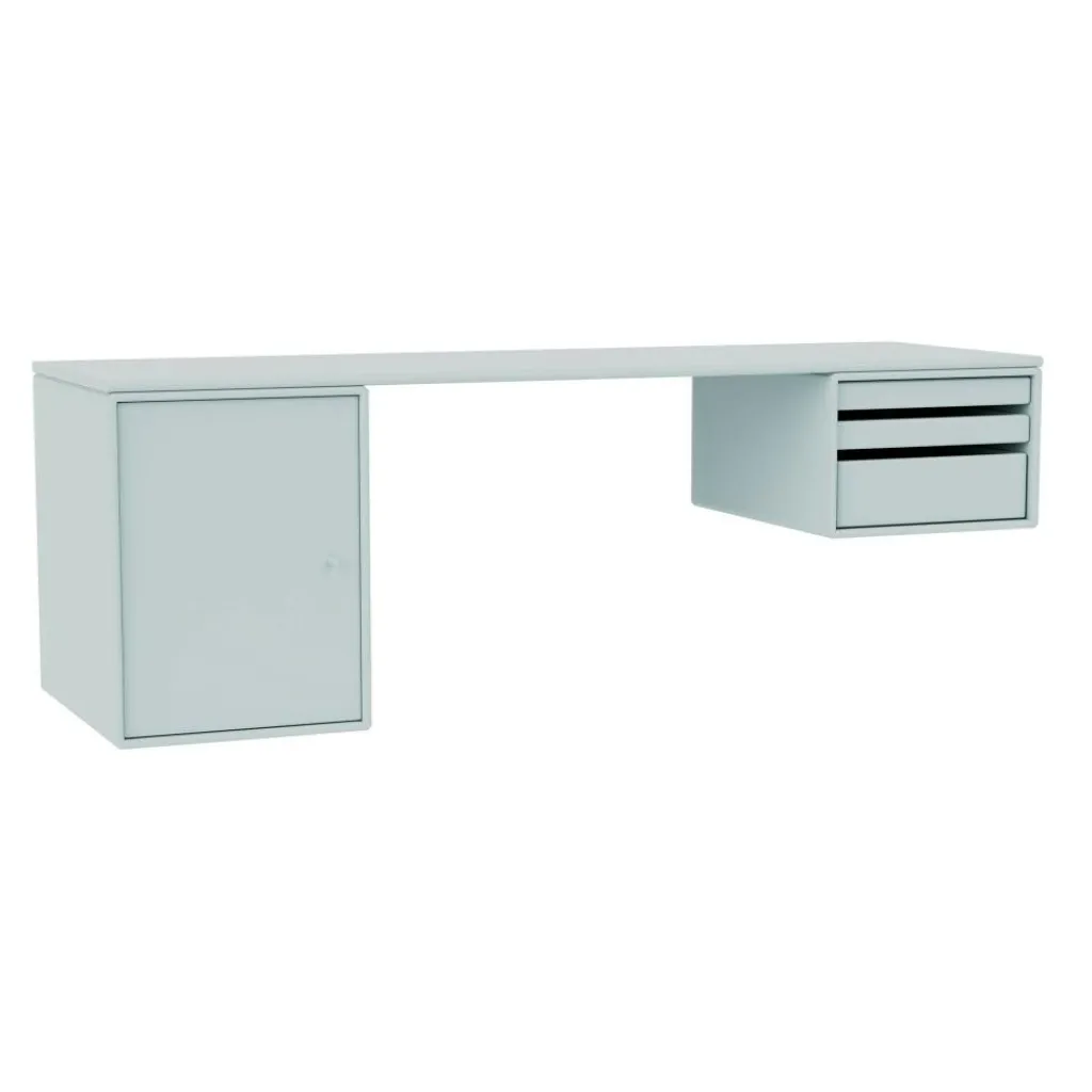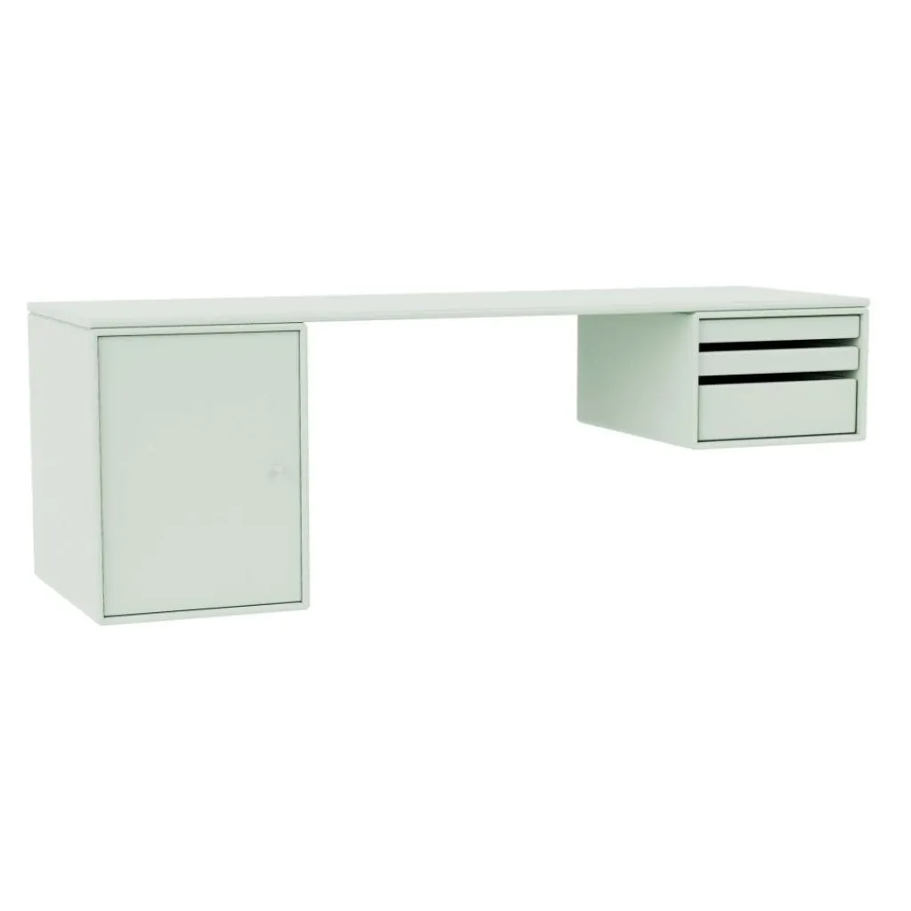 In auffallenden Farben und schlichten verspielten Pastelltönen ist der Workshop Wandschreibtisch erhältlich. Verantwortlich für die außergewöhnliche Farbgebung ist die Farbdesignerin Margrethe Oddgard. Absolute Beinfreiheit ist beim Workshop Wandschreibtisch garantiert: Er steht nämlich wie traditionelle Schreibtische nicht auf vier Füßen, sondern wird an der Wand montiert. Dadurch lässt sich die Höhe der Arbeitsplatte ganz individuell gestalten. Der Workshop Wandschreibtisch wird aus robustem MDF hergestellt, das zum Teil 16 mm und zum Teil 12 mm dick ist. Überzogen ist das Material mit wasserbasiertem Lack. Auf einer Seite sorgen drei Tablettmodule für Ordnung. Sie können völlig aus dem Workshop Wandschreibtisch entfernt werden. Auf der anderen Seite ist ein Schrankfach mit Tür befestigt.