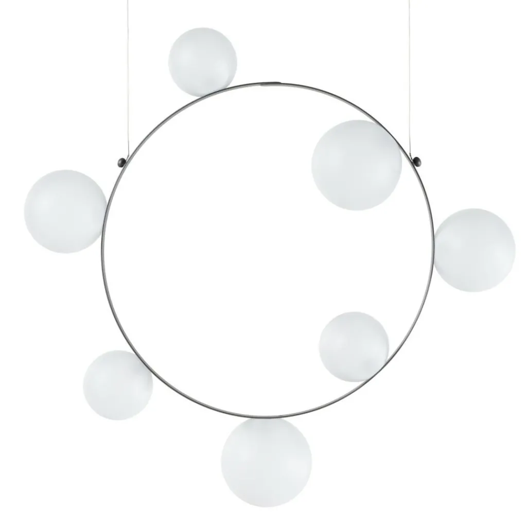 Die extern dimmbare Hubble Bubble 7 LED Pendelleuchte wiegt 2,2 kg. Sie misst in der Höhe 71 cm und in der Breite 71 cm. Die Tiefe beträgt 13 cm und die Kabellänge 250 cm.