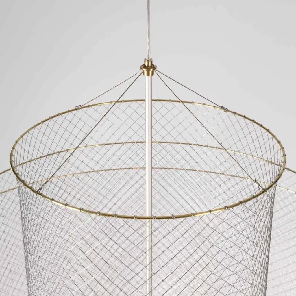 Die Meshmatics LED Pendelleuchte ist 90 cm hoch. Der Durchmesser beträgt ebenfalls 90 cm. Die Leuchte wird mit einem 400 cm langen Kabel mit dem Stromkreis verbunden. Es gewährleistet Flexibilität bei der Aufhängungshöhe. Die Meshmatics LED Pendelleuchte ist extern dimmbar.