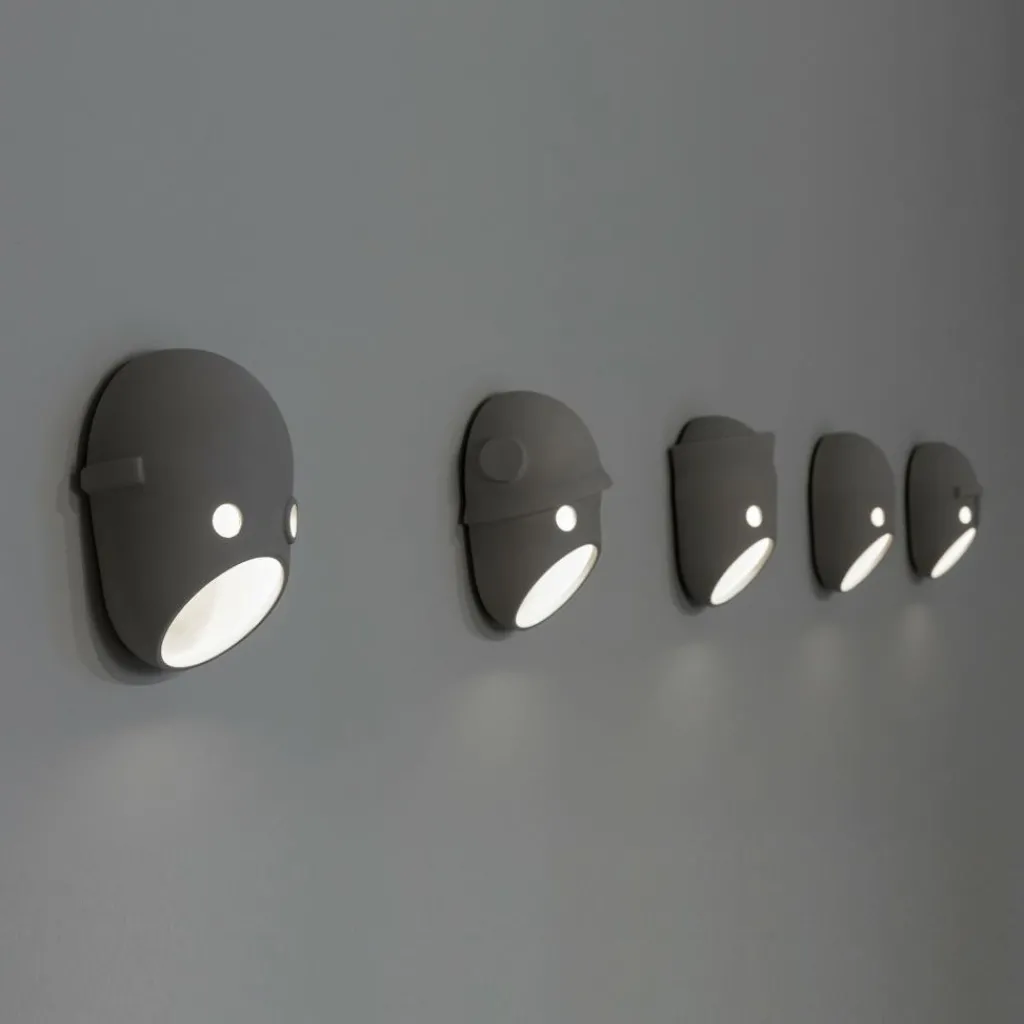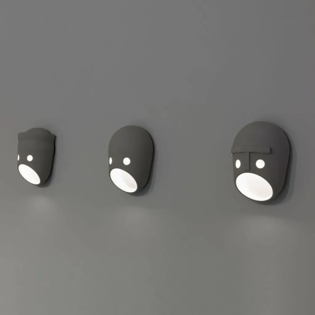 Die Wandleuchte ist in fünf verschiedenen Varianten erhältlich. Die Gesichter der The-Party-Kollektion sind: der Bürgermeister und zukünftige Aristokrat, die Opportunistin Coco, der Patriot Glenn, das böse Superhirn Ted sowie Bert, das schwarze Schaf. Die Designer ließen sich bei dem Entwurf der The Party LED Wandleuchte durch einen Clan von eigenwilligen Persönlichkeiten inspirieren. Durch die Anbringung mehrerer Leuchten wird jedes Wohnambiente humorvoll aufgelockert.