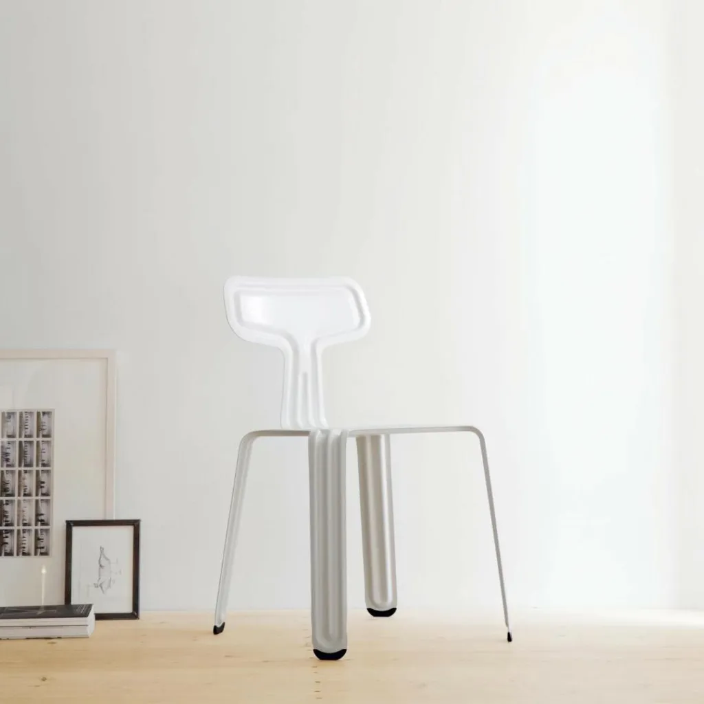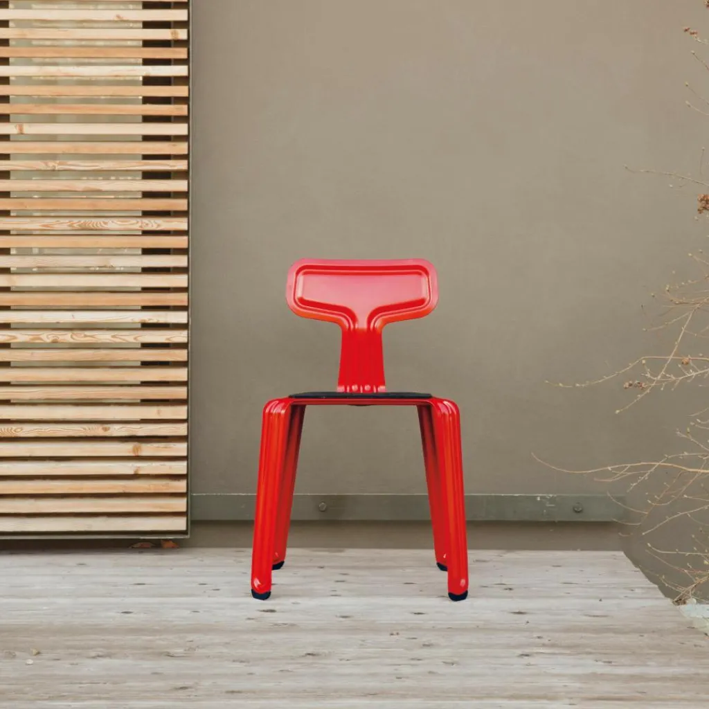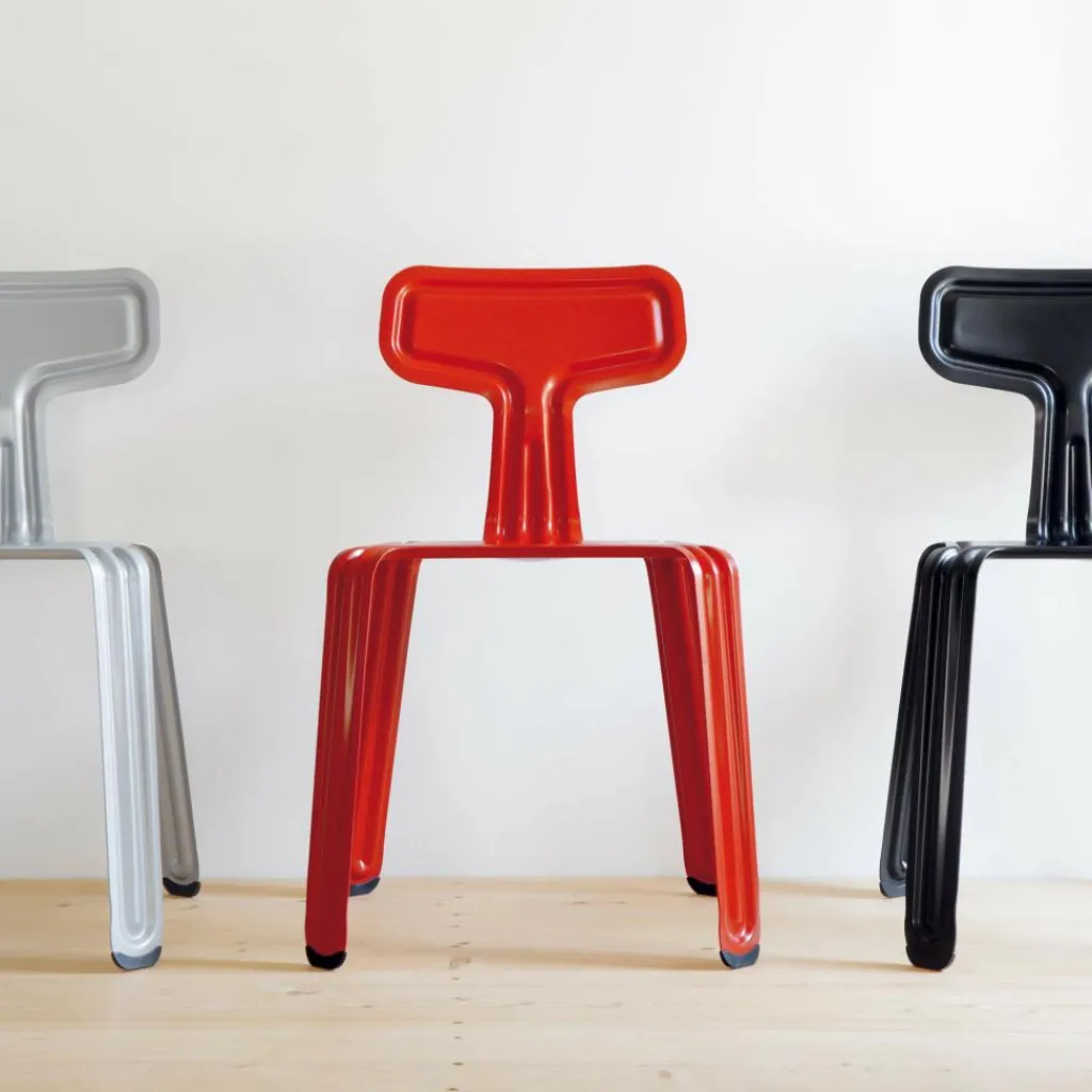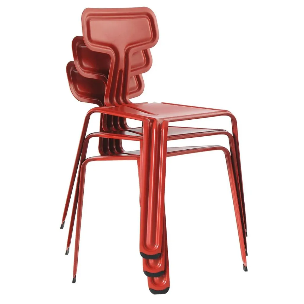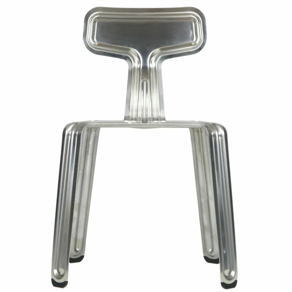 Der Moormann Pressed Chair Stuhl überrascht durch seine ungewöhnliche Form und besonders durch seine hohe Funktionalität. Das Sitzmöbel ist nahtlos aus einem einzigen Stück hochwertigen Aluminiumblechs gefertigt. Die hohe Stabilität und Belastbarkeit bekommt der Stuhl durch die Verformung des Materials, die harmonisch der Kontur des Stuhls folgt. Die widerstandsfähige Pulverlackierung erlaubt auch den Einsatz sowohl im Innen- als auch im Außenbereich. Das Sitzmöbel hat durch das verwendete Material ein geringes Gewicht. Die individuelle Form ermöglicht es, bis zu sechs Exemplare problemlos übereinander zu stapeln und zu transportieren.