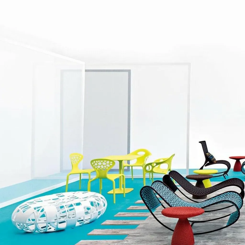 Dieses außergewöhnliche Sitzmöbel ist nicht nur ein Hingucker im Innen-, sondern auch im Außenbereich. Der Supernatural Stuhl mit Löchern reiht sich damit nahtlos in die vielfältige Kollektion Moroso Outdoor ein. Seine Konstruktion aus Polypropylen und Glasfaser macht ihn robust, aber dennoch bequem, denn die Beine aus dünnem Kunststoff schwingen im Sitzen bei Bewegungen leicht mit.