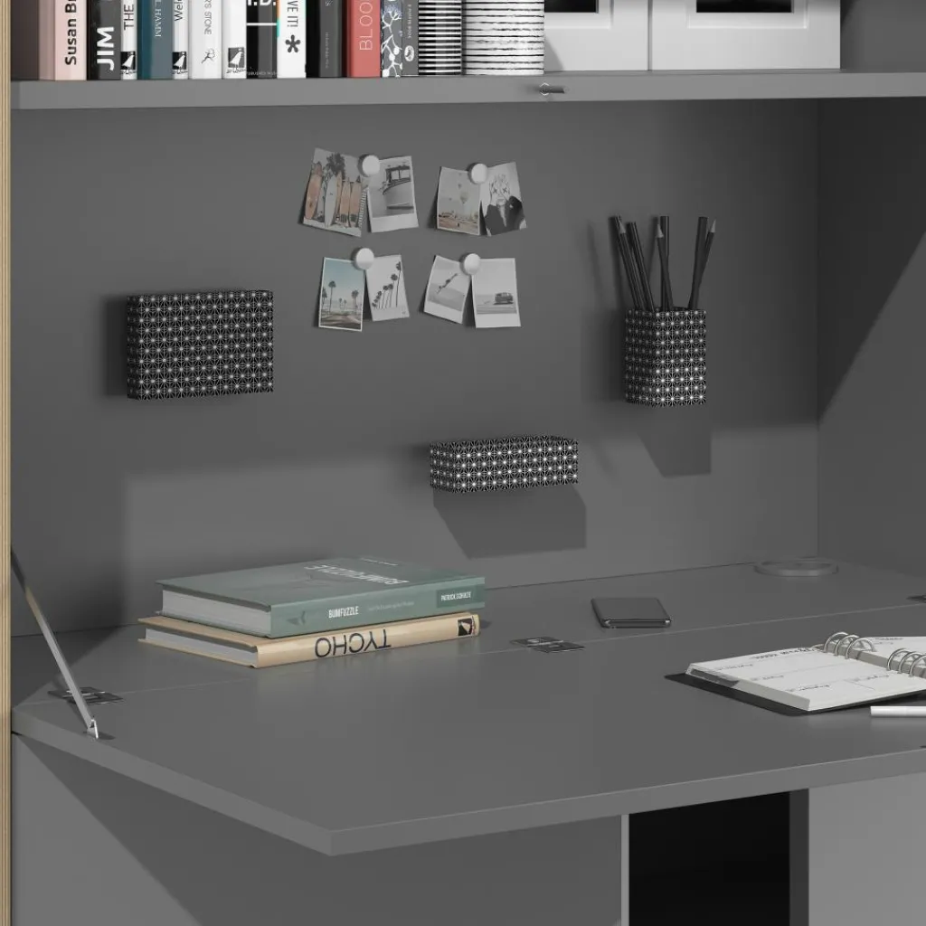 Das Flai Home-Office Sekretär magnetisch 118x36x216,8cm wurde von KaschKasch für die Marke Müller Small Living entworfen. Wieder einmal beweist das Unternehmen aus Deutschland, wie stilvoll Möbel für kleine Wohnräume sein können.