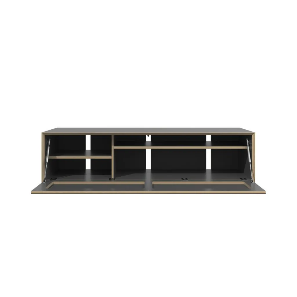 Zum Vertiko HiFi Sideboard werden zwei Fachböden geliefert, die flexibel montiert werden können. Das Sideboard hat eine Breite von 148 cm. Die Höhe beträgt 37 cm und die Tiefe 45 cm.